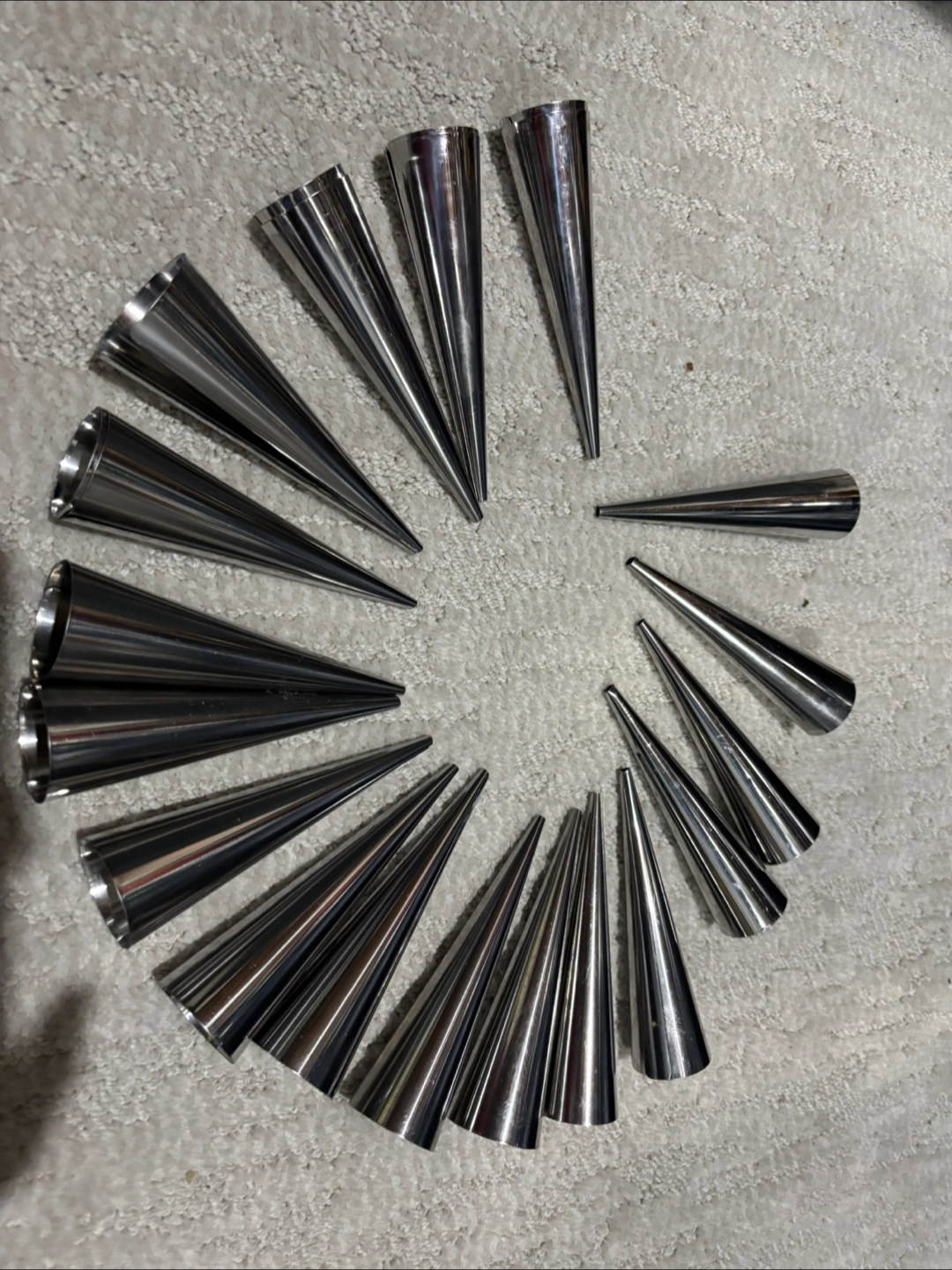 I have a collection of cake decorating tools for sale! There are various piping tips, some metal and some plastic, in different sizes and shapes. There's also a decorating syringe and some mixer beaters. Perfect for anyone who loves to bake and decorate cakes
