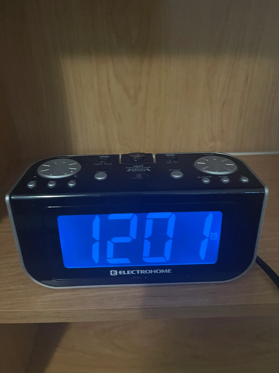 Selling an Electrohome alarm clock radio. It's black and in great shape. Features include a sleep sound machine and radio function. Perfect for helping you drift off to sleep or waking up gently!