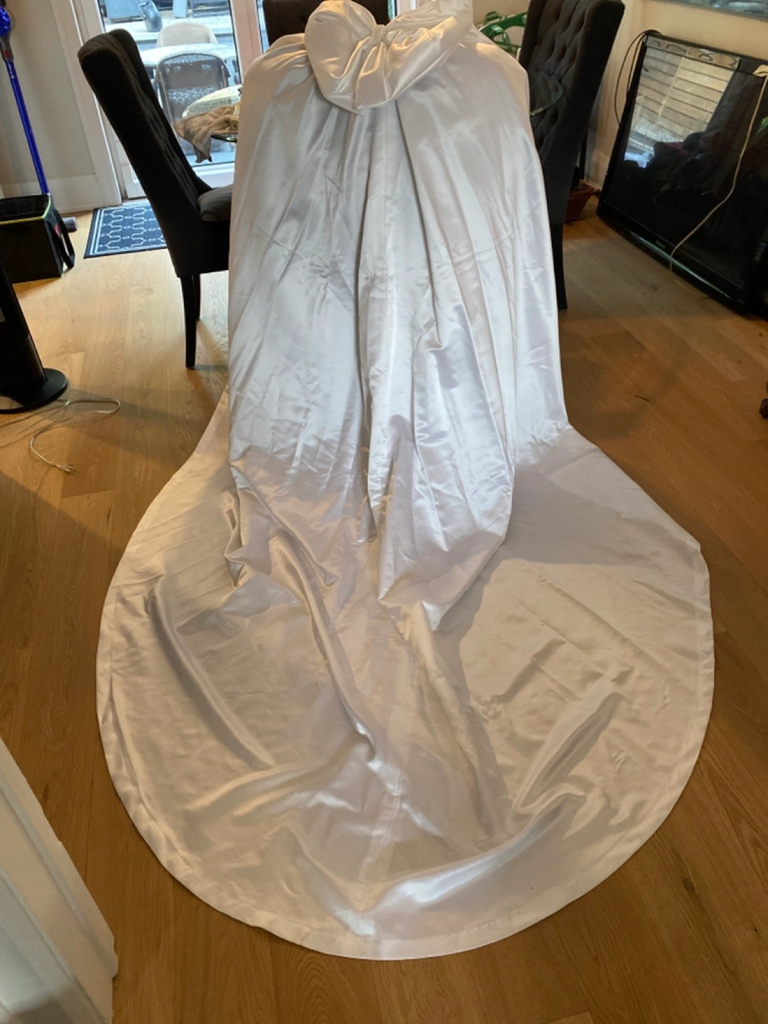 Selling a beautiful white wedding Train only - and veil. Material could also be used for a project. The veil is also white and has delicate floral detailing. Perfect for your special day or for playing dress up for your kids.