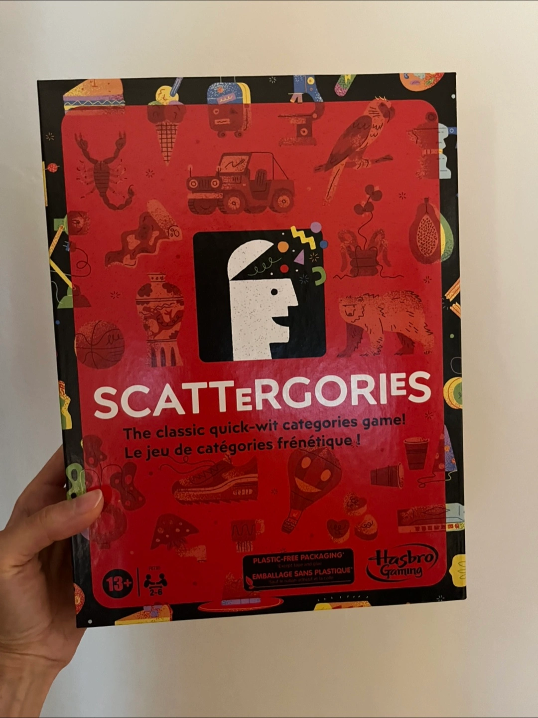 Selling a brand new and sealed Scattergories board game in great condition! It's the classic quick-wit categories game that's fun for the whole family. Includes six folders to hold your lists and answer sheets, and six pencils for inserting your answer sheets. Perfect for game night!