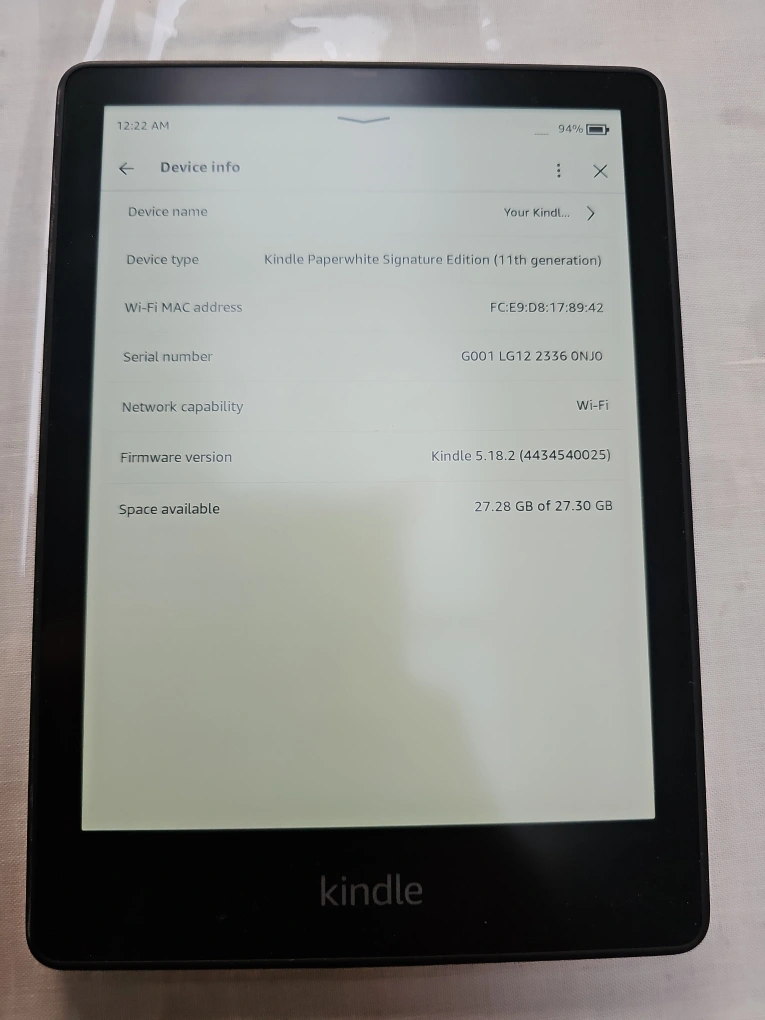- Device type: Kindle Paperwhite Signature Edition (11th generation)