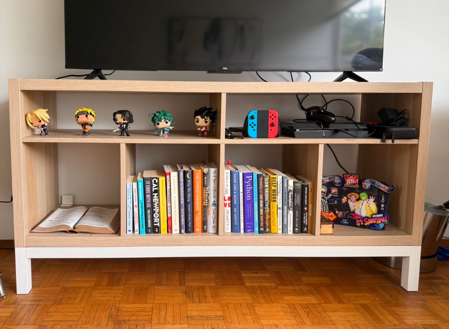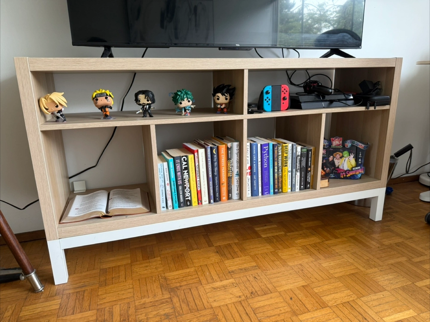 Selling a gently used IKEA Kallax shelf unit. It's in great shape and perfect for organizing books, decor, or media equipment. The light wood and white finish will fit in with any decor!