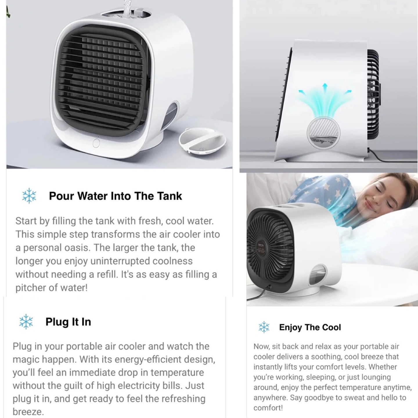 515Enjoy cooler air with this portable air cooler. Just fill the tank with water and plug it in. It's energy-efficient and has customizable speed settings. It also moisturizes and refreshes adding moisture to the air and can disperse your favorite scents, enhancing your environment.