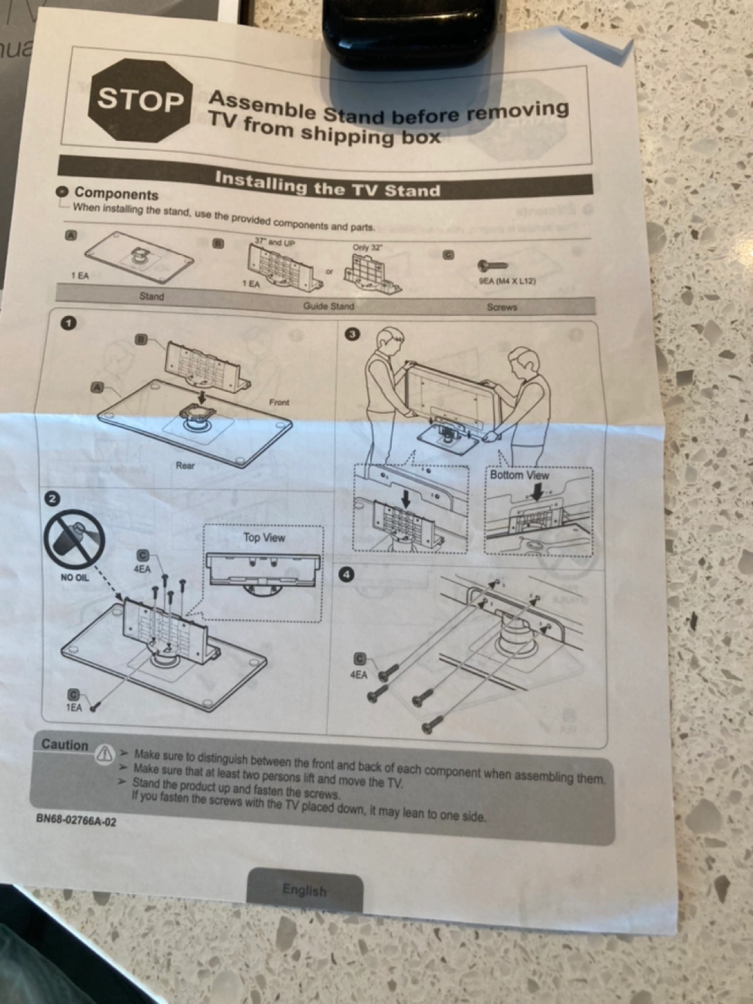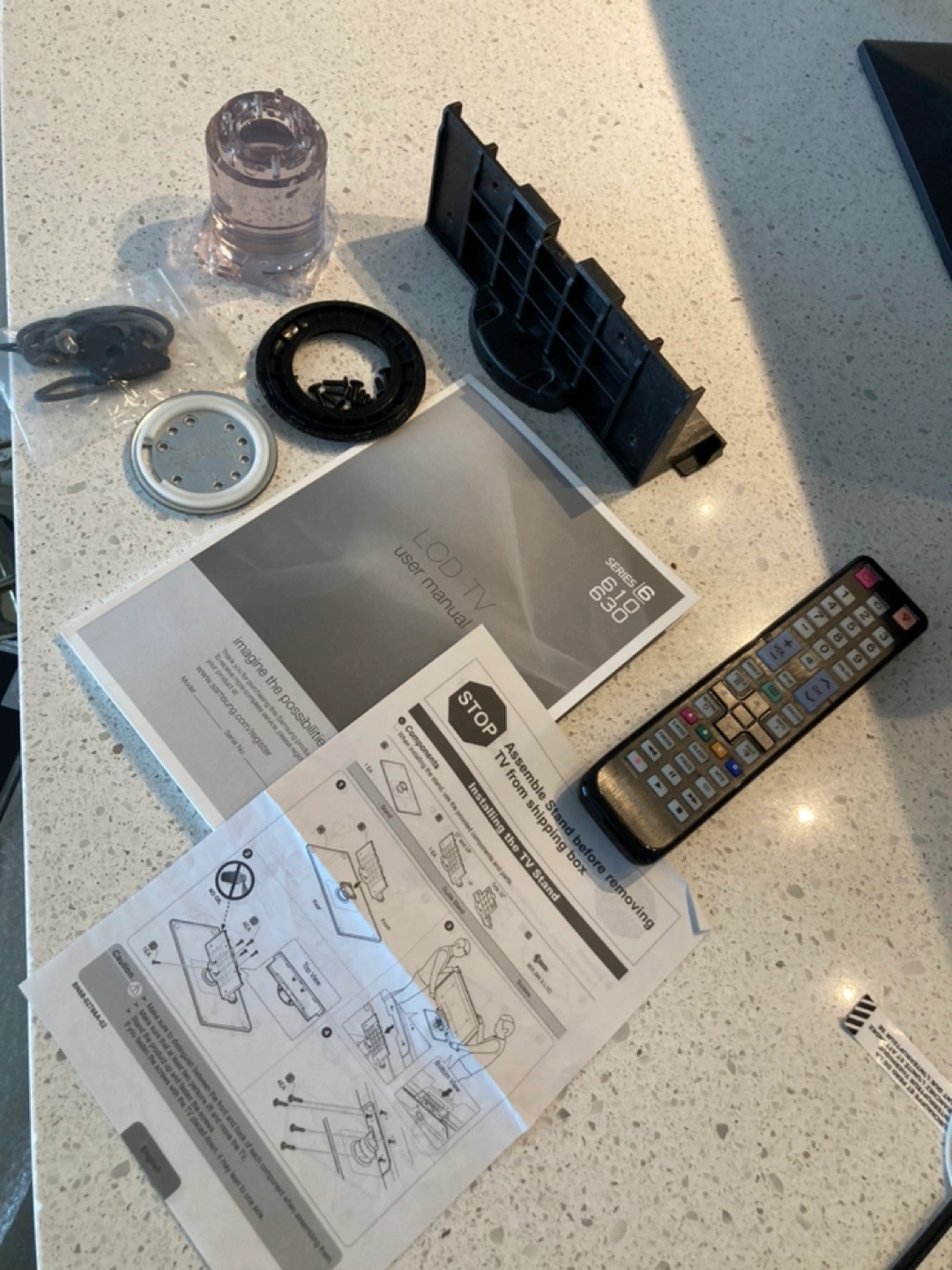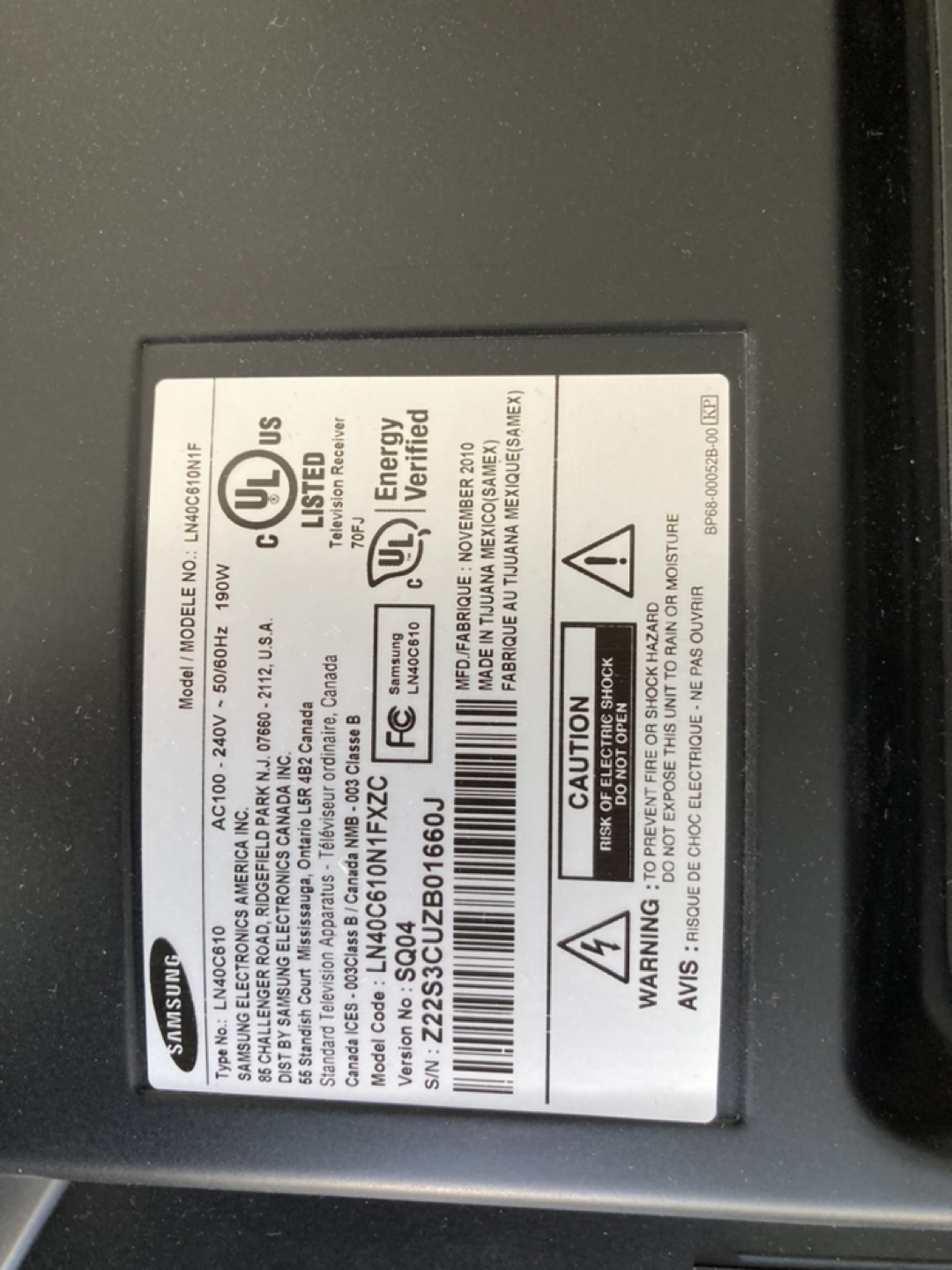 42” Samsung TV. With stand. Unassembled for easy transport. All pieces including manual, assembly instructions and remote. Works great. Just moving and don’t have the space.
