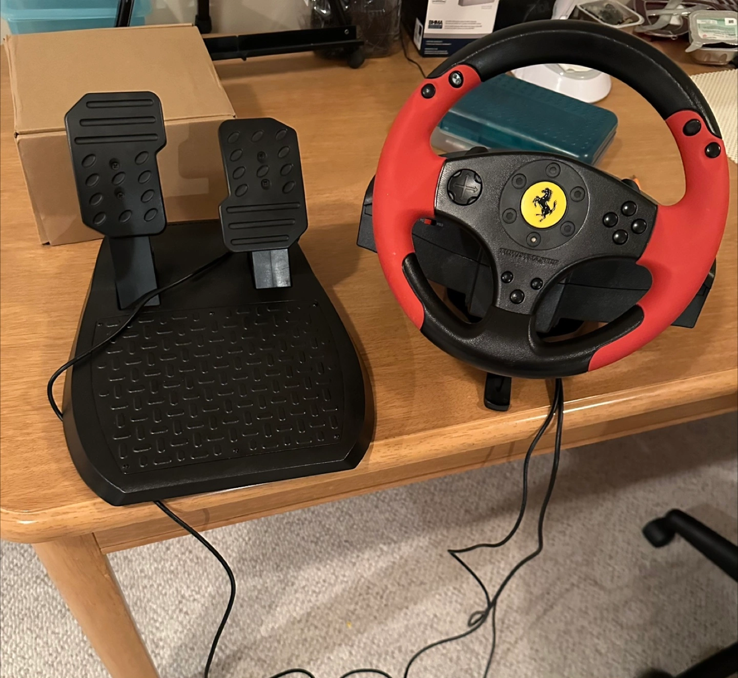 Selling a Thrustmaster Ferrari racing wheel with pedals! It's in great shape and ready for some virtual racing action. Perfect for PC or console gaming PS3