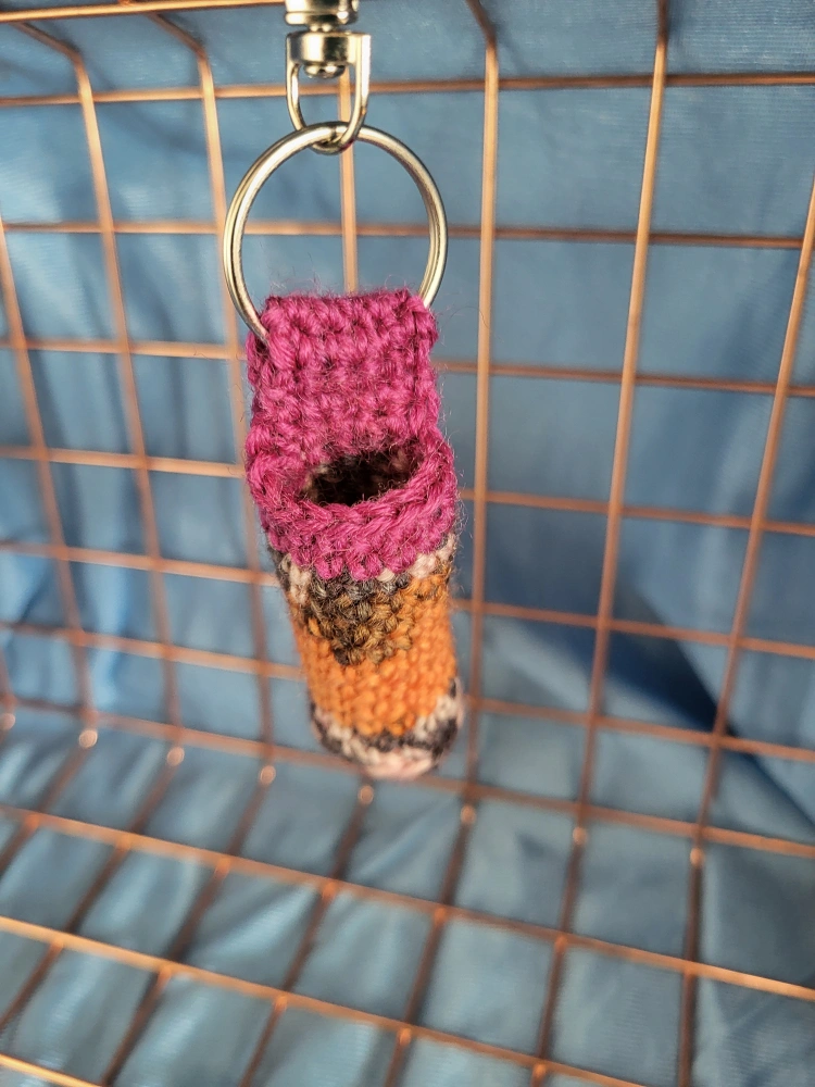 Crocheted by me! This cute little lip balm Holder can be hung on your bag sobyou are always ready to save your lips from being chapped, or you can put your lipstick in it so you can find it easier in you bag! Price: $2.00 Pick up only near Broadview Avenue and Mortimer Avenue.