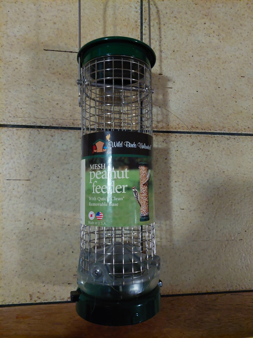 Selling a brand new Wild Birds Unlimited mesh peanut feeder. It features a Quick-Clean removable base for easy cleaning. It has a durable stainless steel mesh construction and can be hung or pole-mounted. A good quality feeder to add to your backyard.