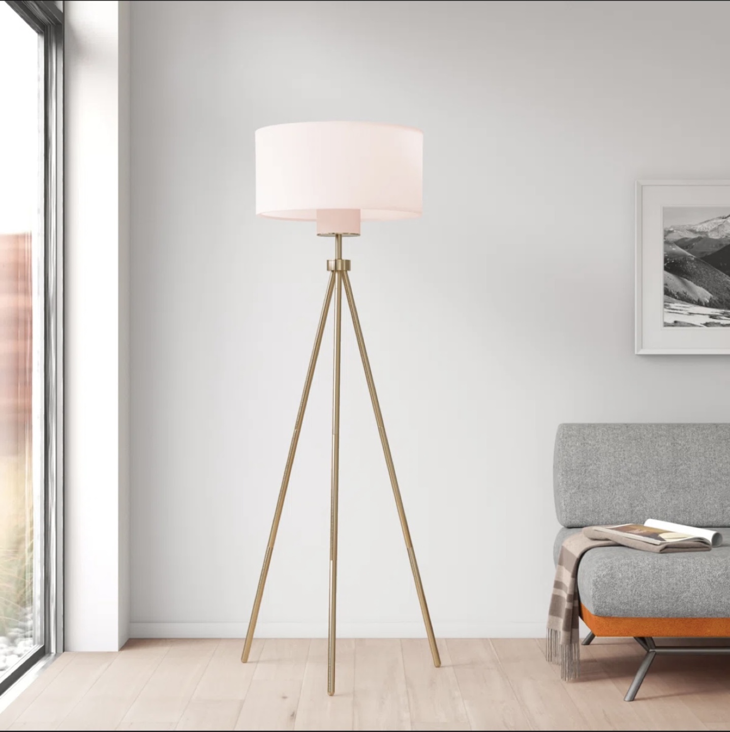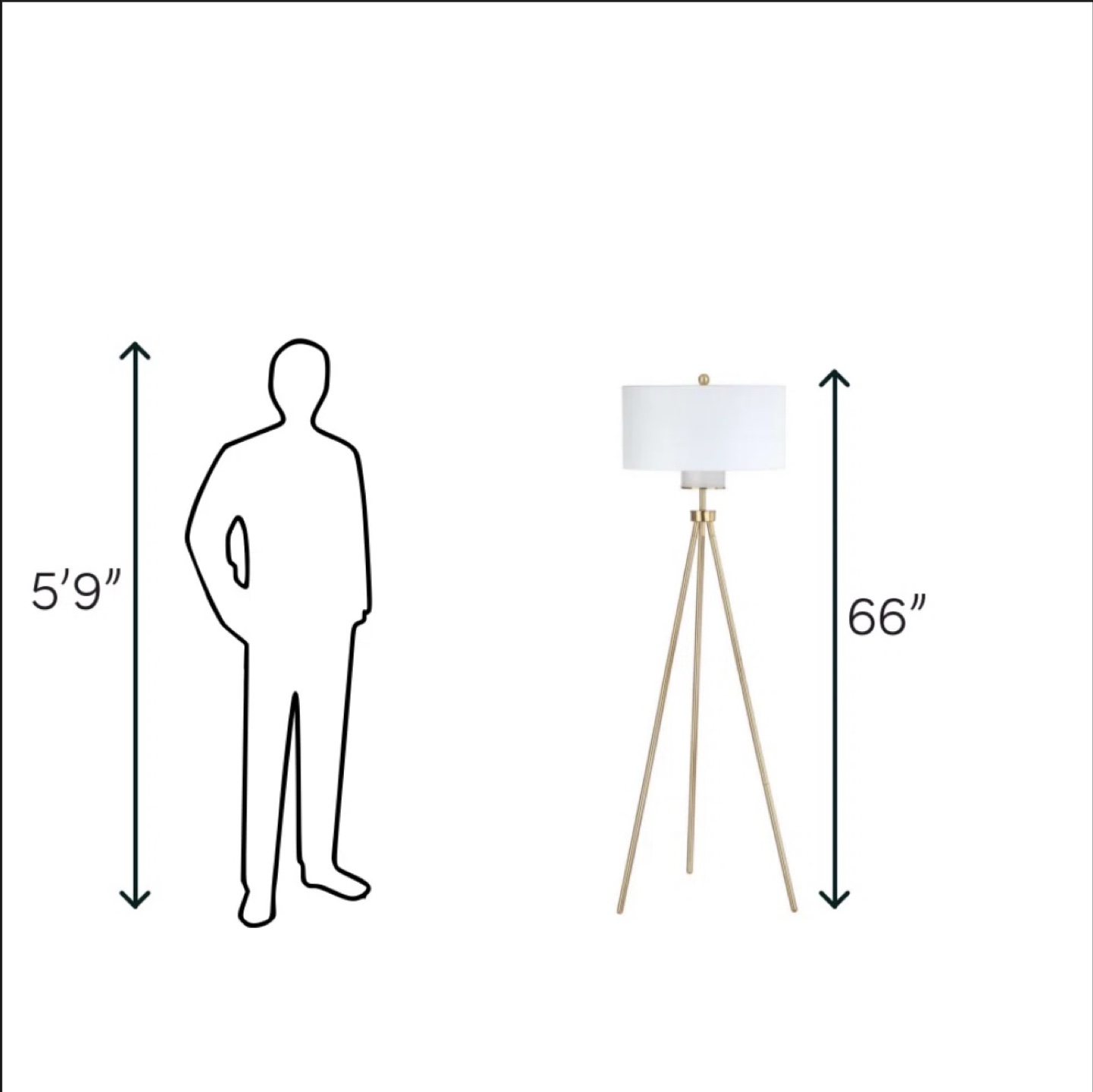 Selling a stylish gold tripod floor lamp! It's in great condition and stands at 66 inches tall. Perfect for adding a touch of elegance to any room