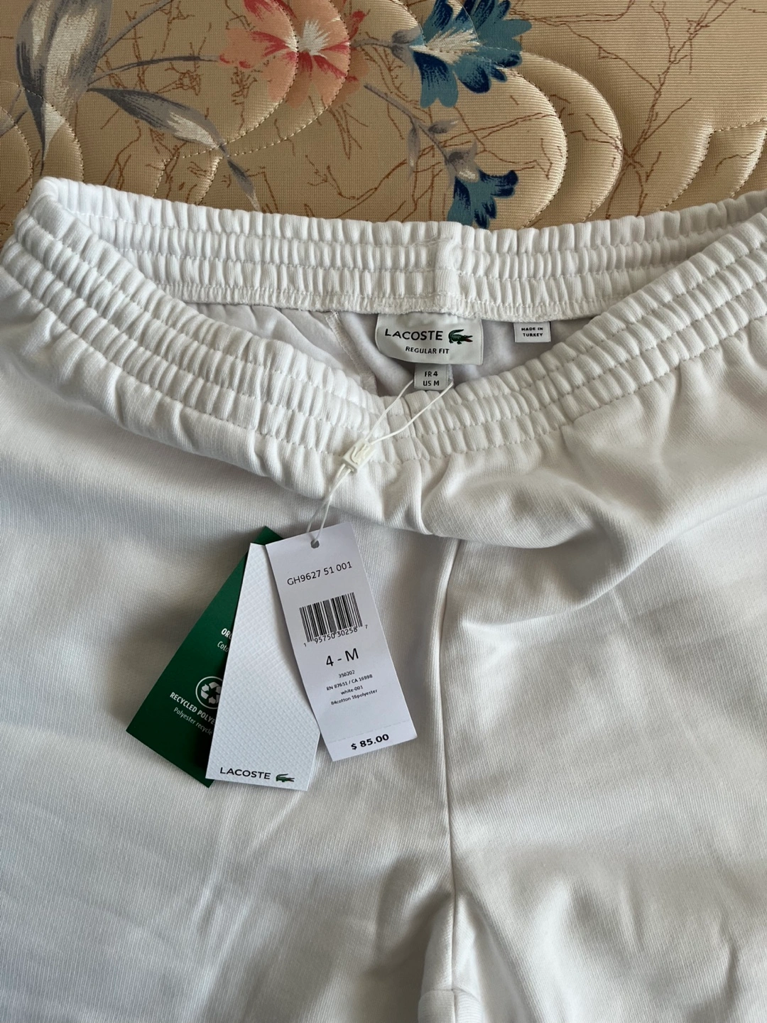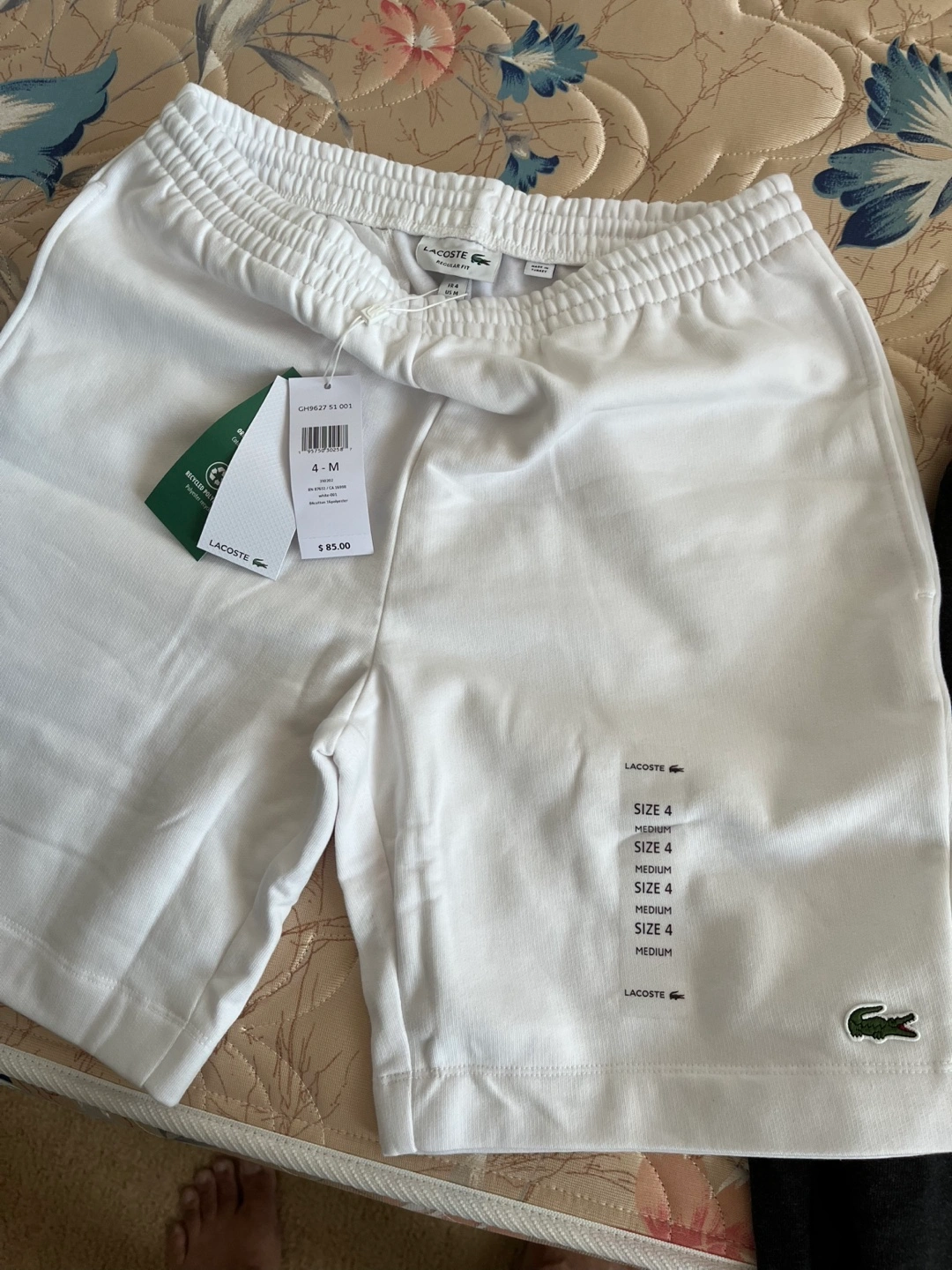 50These Lacoste shorts are in great condition and ready for a new home! They're a crisp white colour and a size medium. The tag shows they're a regular fit and were originally bought for $85. Perfect for a casual day out or lounging at home!
