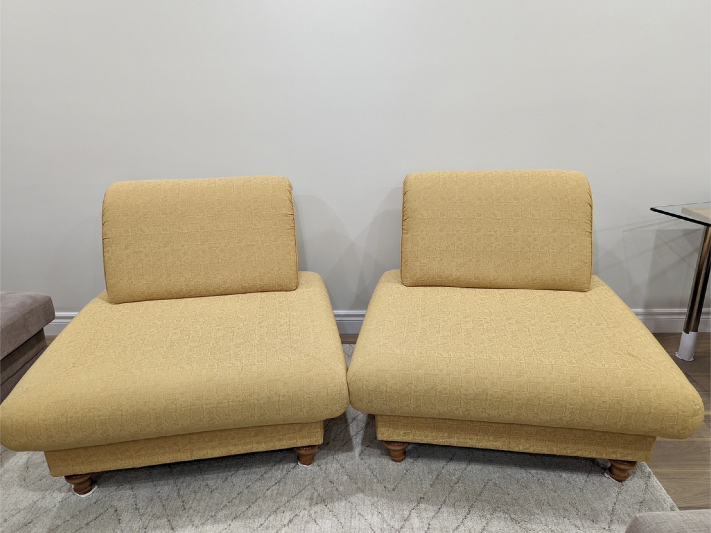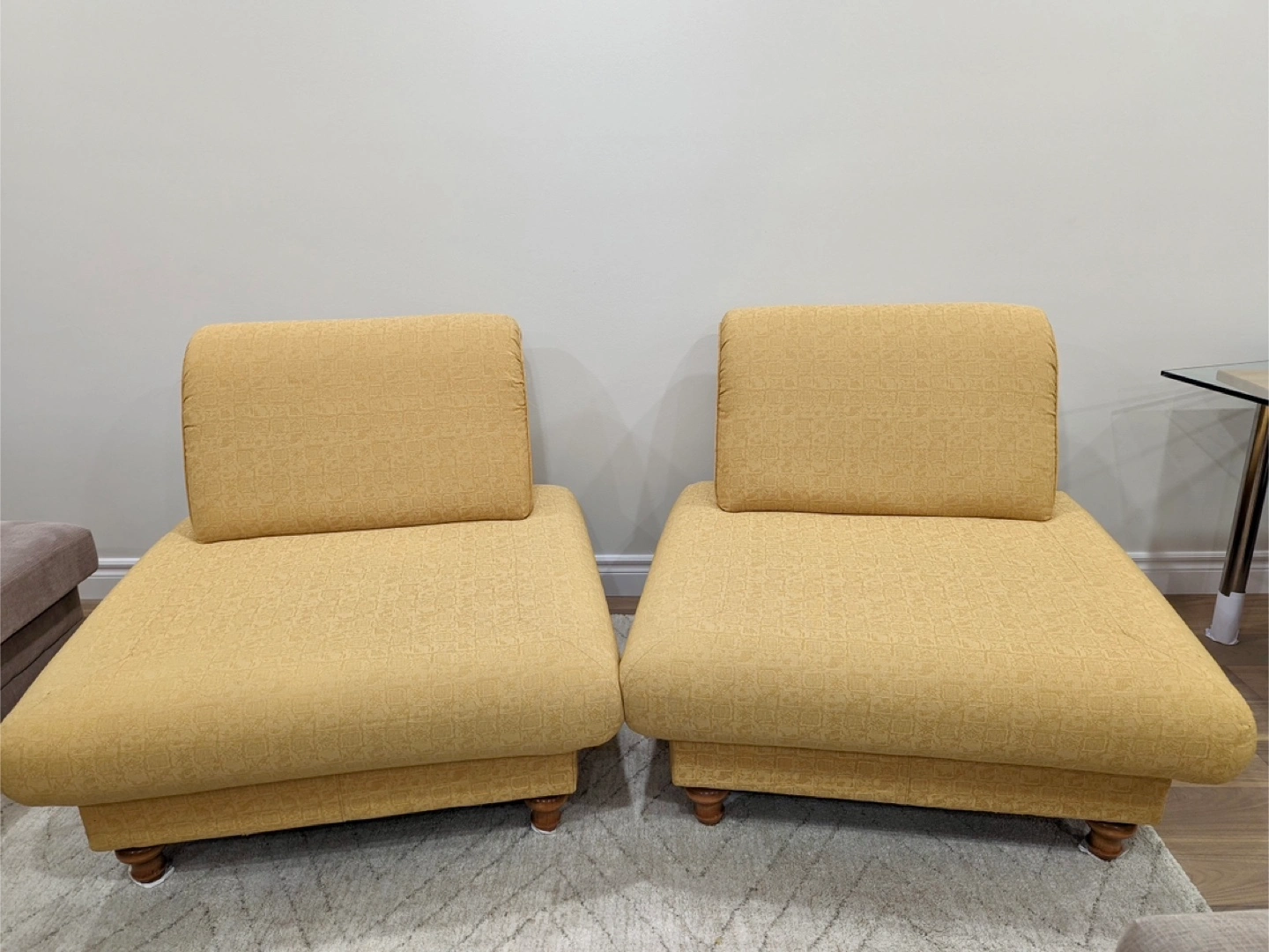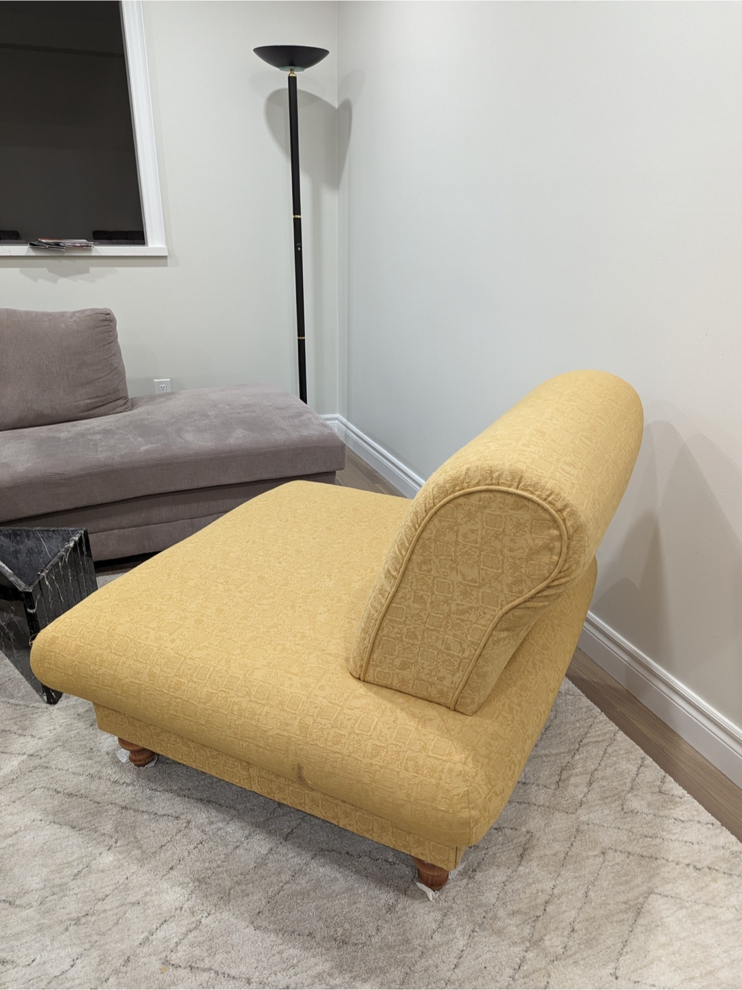 Move out sale - Selling a pair of comfy yellow lounge chairs! They're in great shape and would be perfect for a living room or den