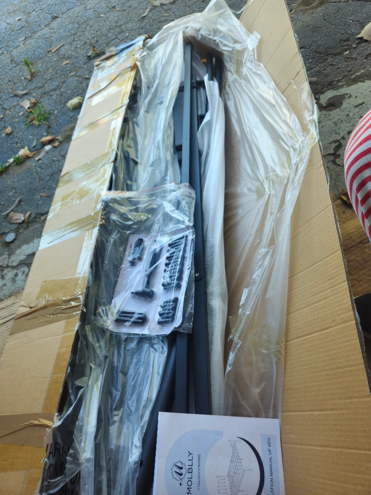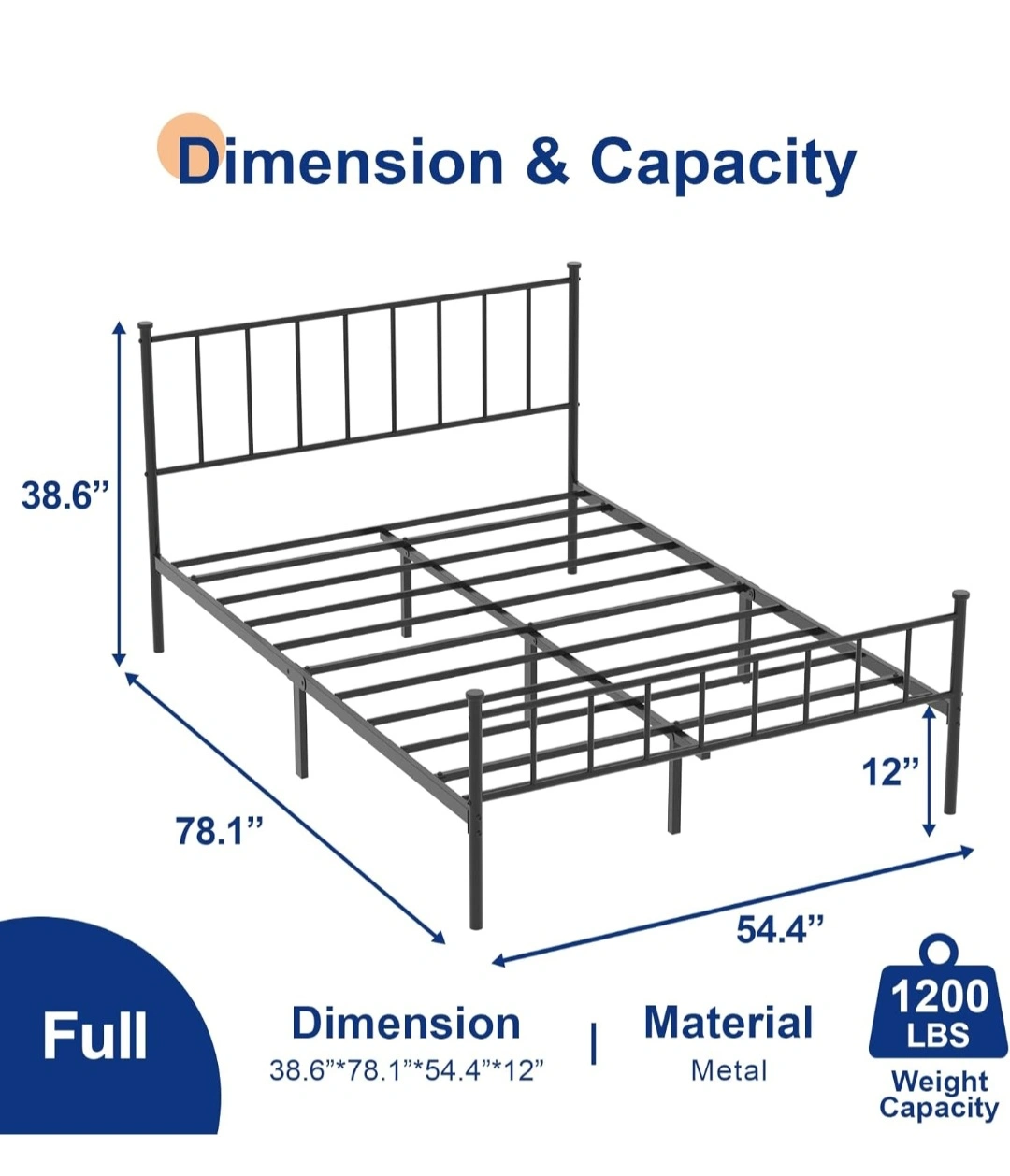 Selling a Molblly bed frame, sized for a full The frame is metal and comes with the installation manual.
