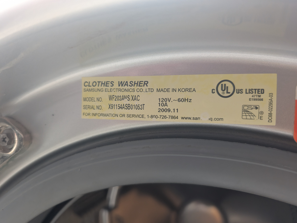 Selling a Samsung clothes washer, model number WF203ANS/XAC.
