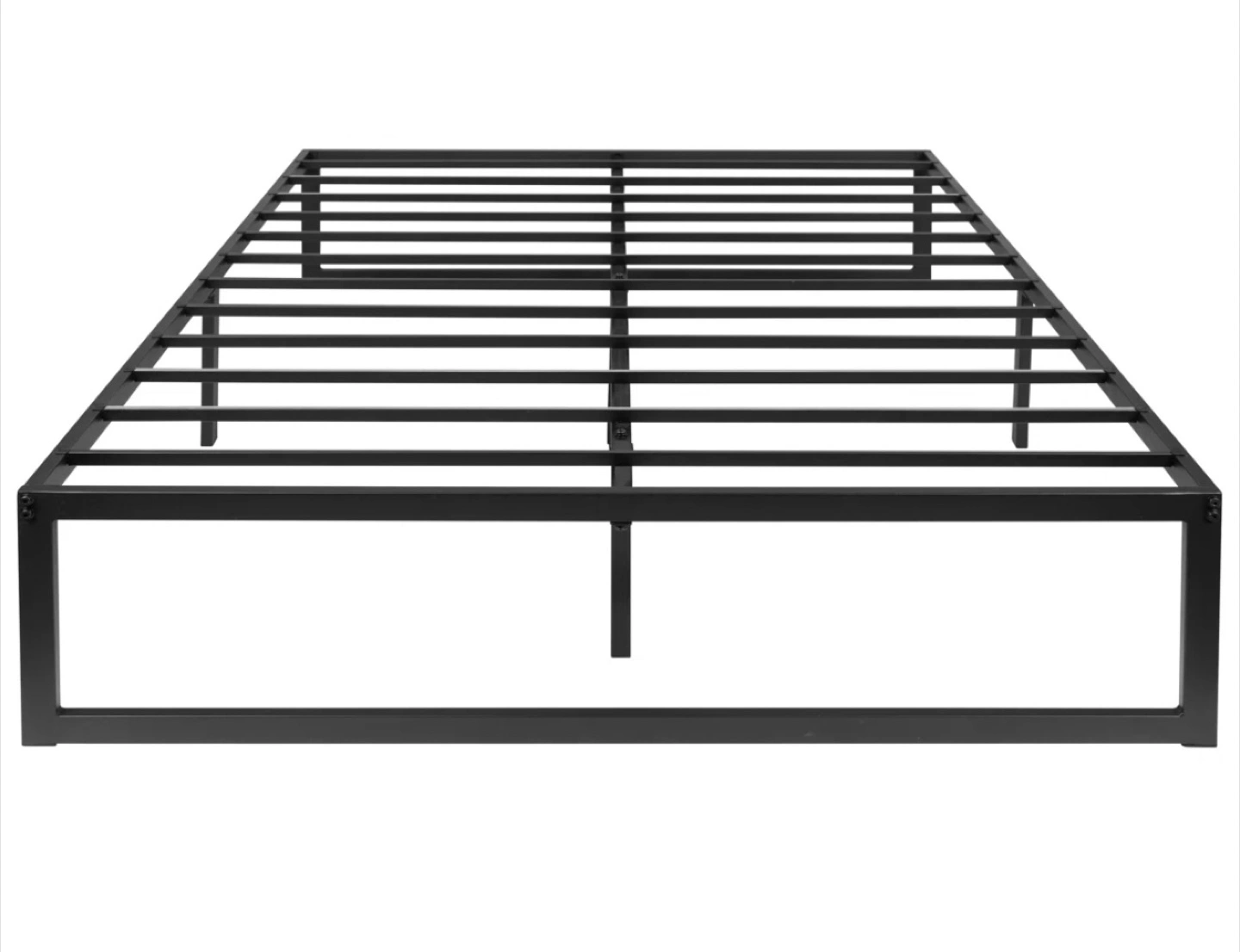 a sturdy metal bed frame in black. It's in great condition and ready to support your mattress! Perfect for a minimalist bedroom setup