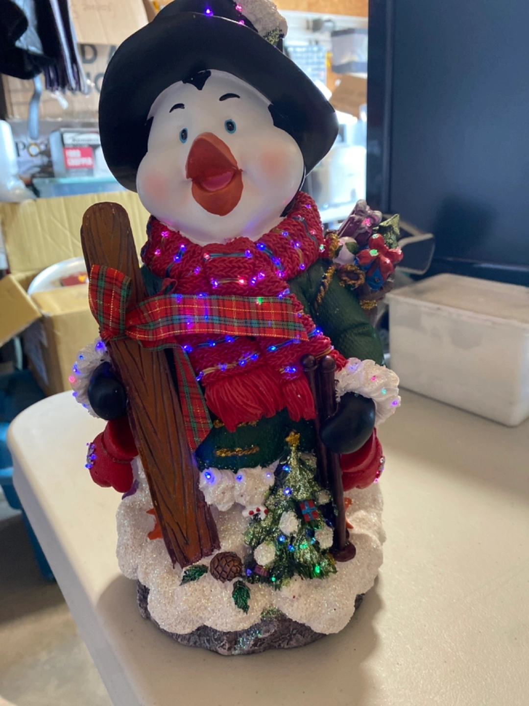 111This adorable penguin decoration is all set for the holidays! It's wearing a festive hat and scarf, holding skis, and even has a little Christmas tree. The lights add a warm and cheerful glow to any room during the holiday season