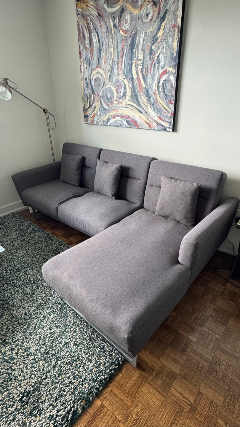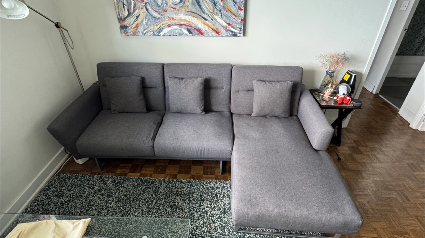 Selling a comfy grey sectional bed sofa bed with adjustable back for more comfort. The back flattens to become a bed .