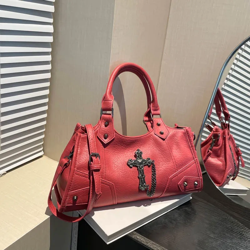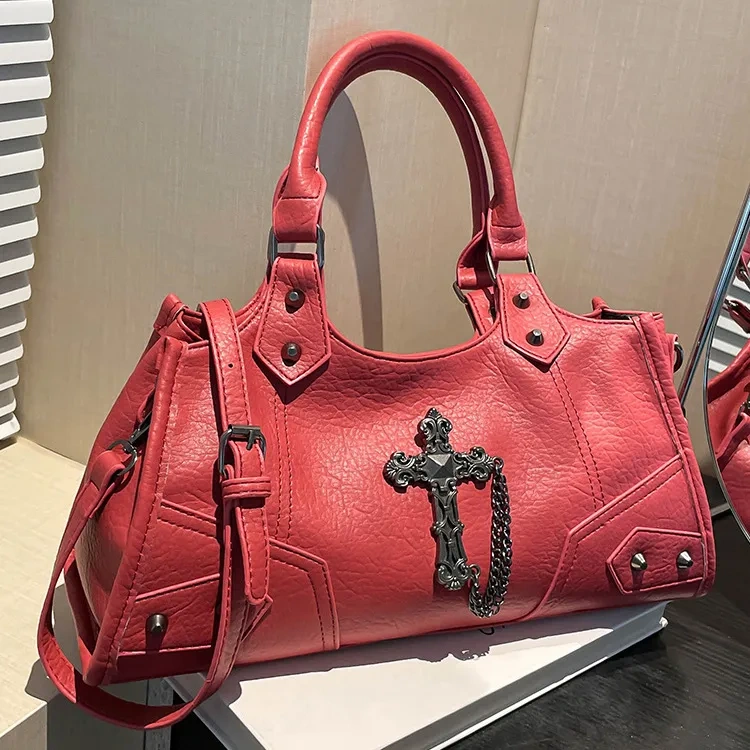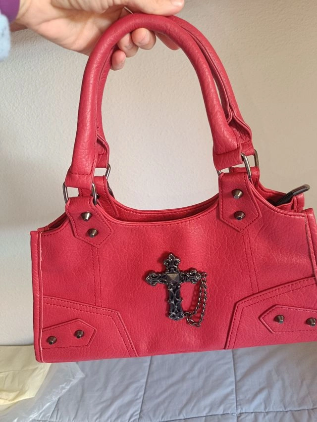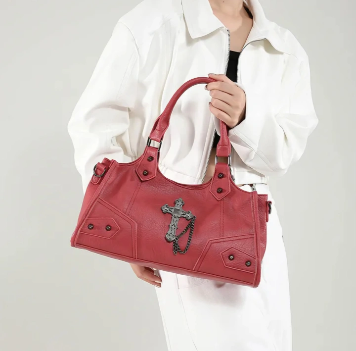 Turn heads and own your look with this bold red punk-style shoulder bag, loaded with attitude and style. Perfect for adding a fiery twist to your everyday outfits. β€οΈβπ₯