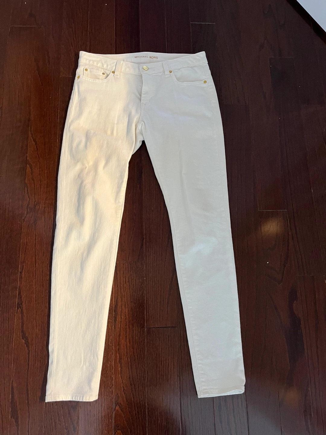 Selling a pair of Michael Kors white jeans! They're in great condition and perfect for spring or summer. They're a classic and versatile piece to add to your wardrobe!