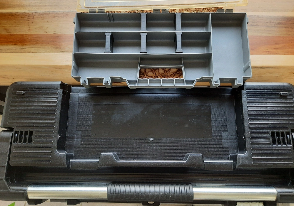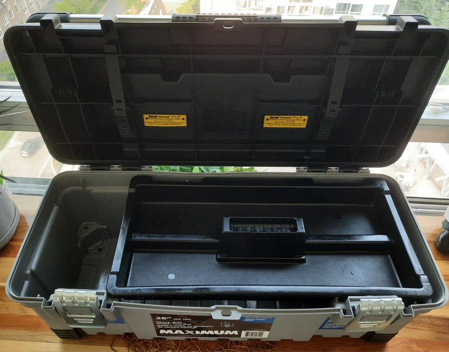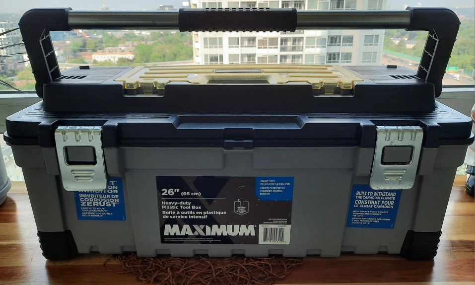 Selling a Maximum 26" heavy-duty plastic tool box. It's built to withstand the Canadian climate and is made of service plastic. Great for organizing your tools!