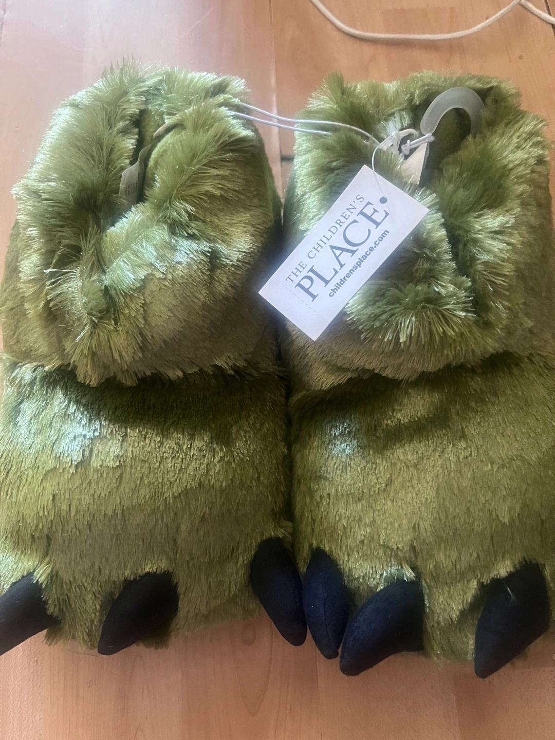 These adorable monster paw slippers from The Children's Place are in youth size 3-4. They're a fun and cozy way to keep your little one's feet warm. The original price tag shows they were $29.95, selling for $15 Brand new Cash only please Pet free, smoke free home