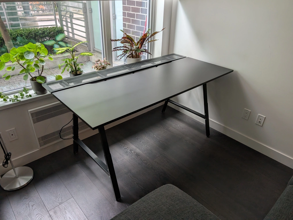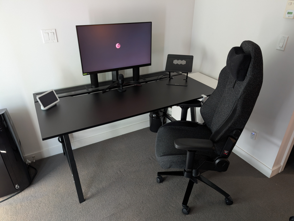 Selling a black gaming desk in excellent condition. It's a sturdy desk that would be perfect for a home office or gaming setup. Desk will be broken down for buyer. Pick up only.