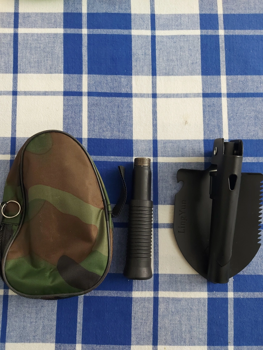 919Selling a LingYun folding shovel! It comes with a camouflage carrying pouch and the handle. Great for camping or gardening