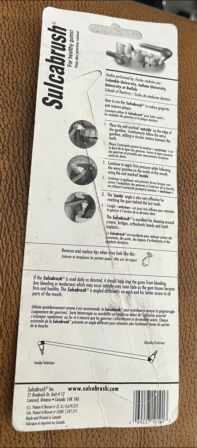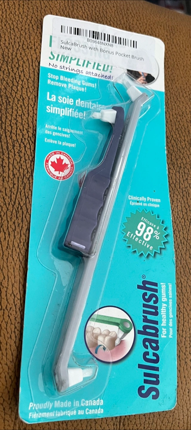 Selling a brand new Sulcabrush with Bonus Pocket Brush! It's designed to stop bleeding gums and remove plaque. Clinically proven and 98% effective for healthy gums. Proudly made in Canada