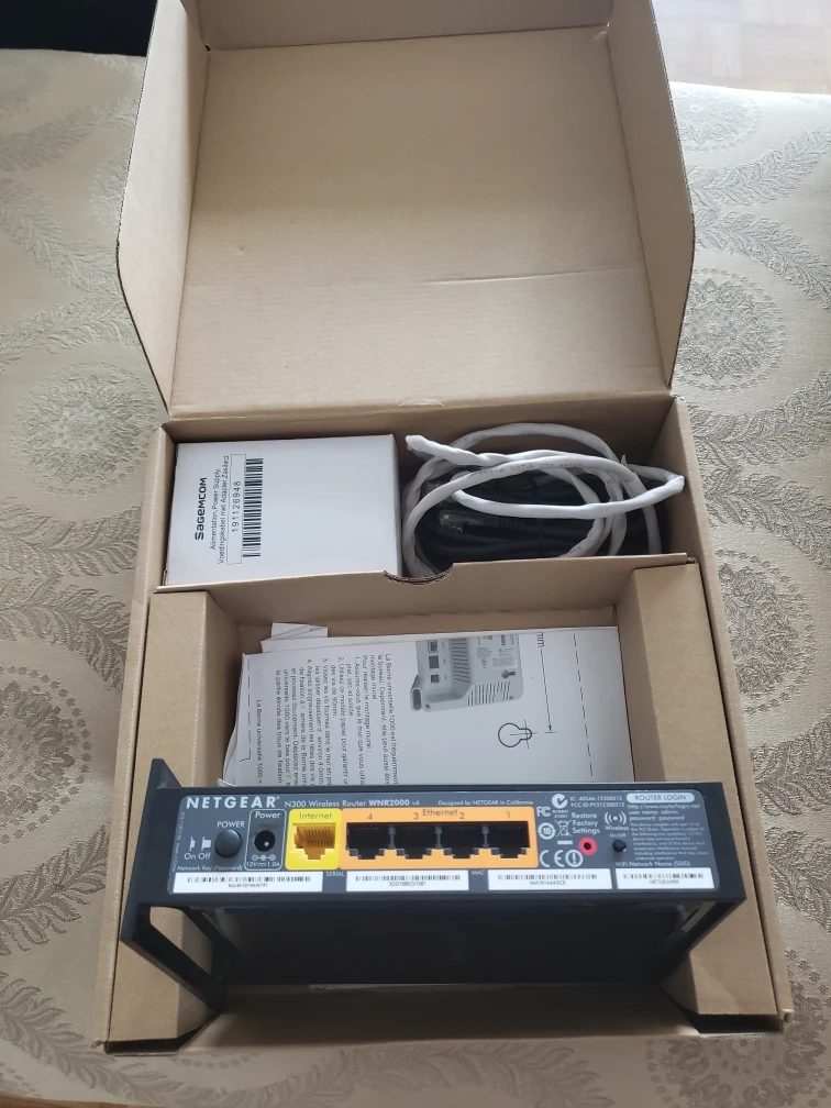 Selling a like-new NETGEAR N300 Wireless Router, model WNR2000v4. It comes with its original box and all included components, such as the charger and instructions. A great option for your home network!