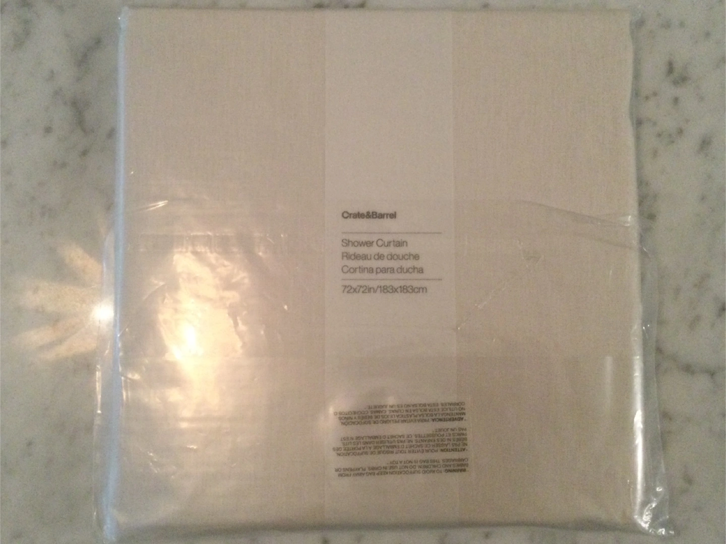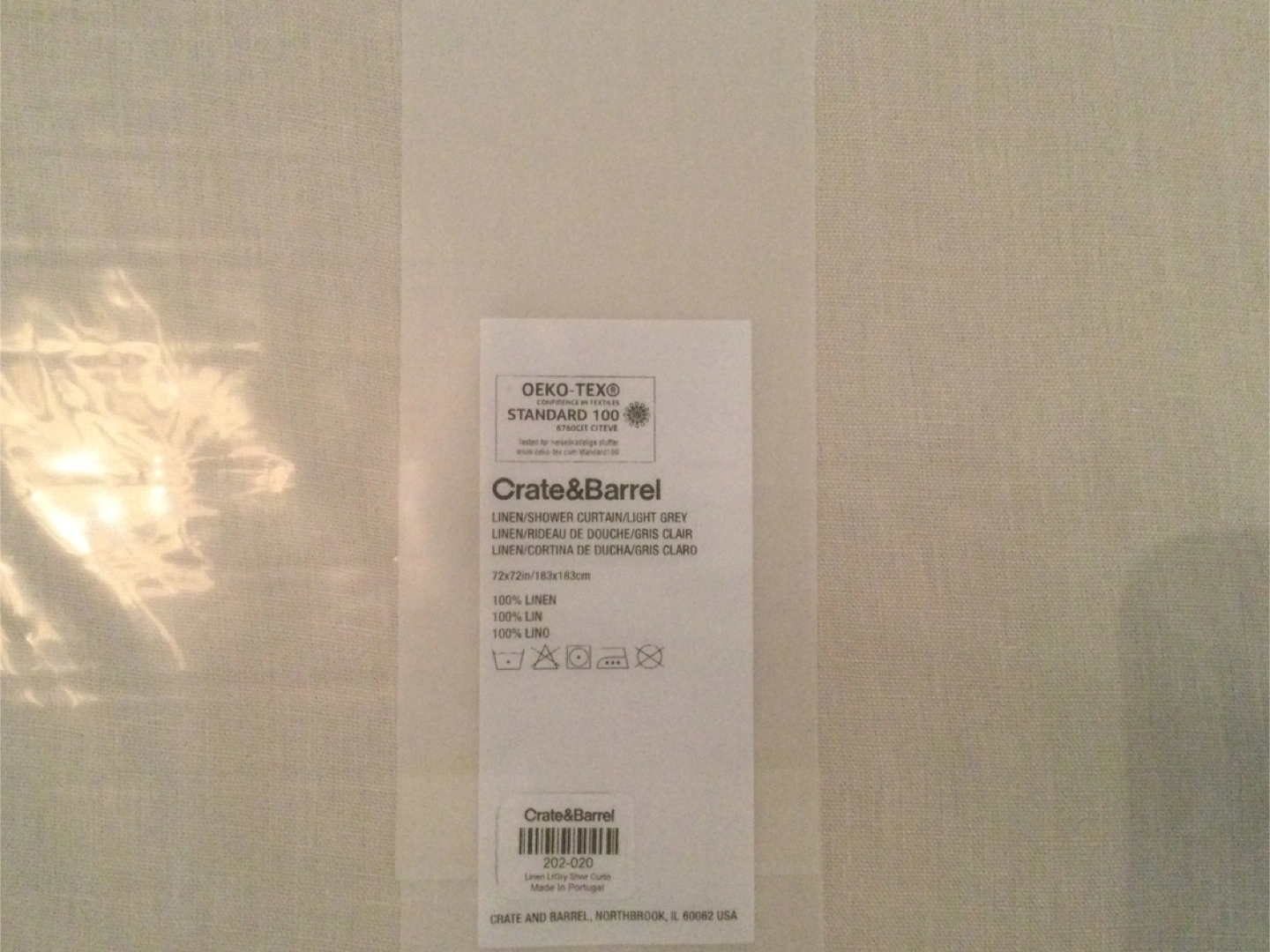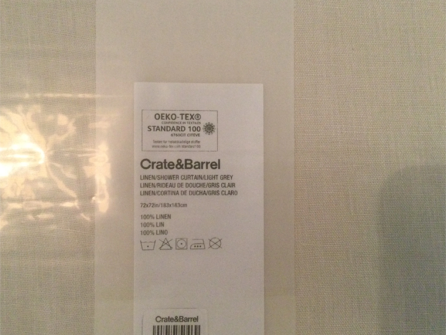 A brand new Crate & Barrel linen shower curtain still in its original packaging!