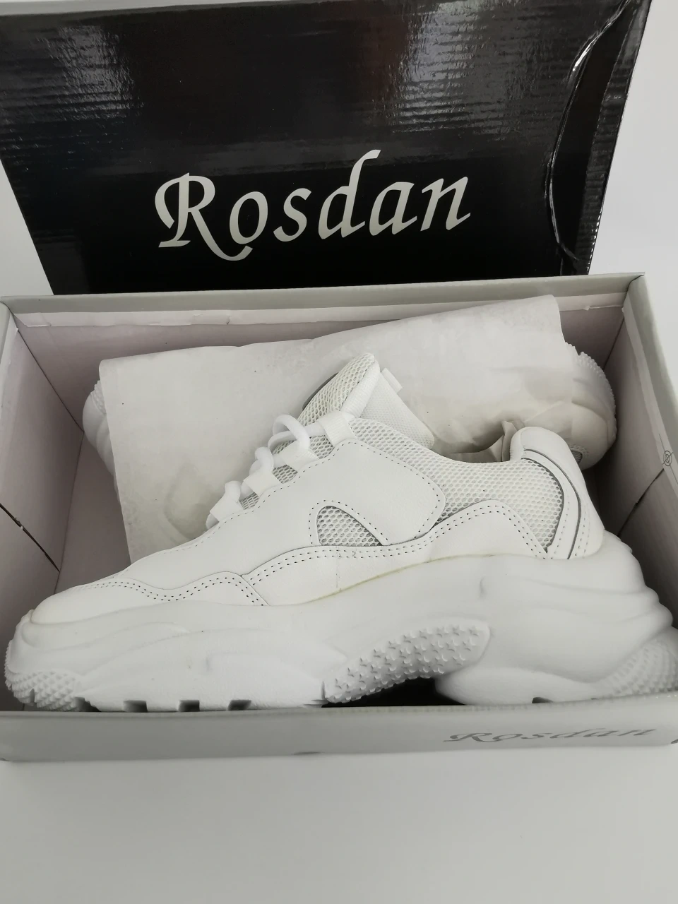 712Check out these Rosdan white fashion sport sneakers! They're a size 38, which is approximately a women's size 7.5.The style is perfect for adding a bit of sporty chic to your everyday look. These are in great shape, ready for their next adventure. * Brand: Rosdan * Size: 38 (approx. women's 7.5) * Colour: White * Style: Fashion Sneakers Just a heads-up, if you're seeing this ad, the sneakers are still up for grabs. Don't miss out!