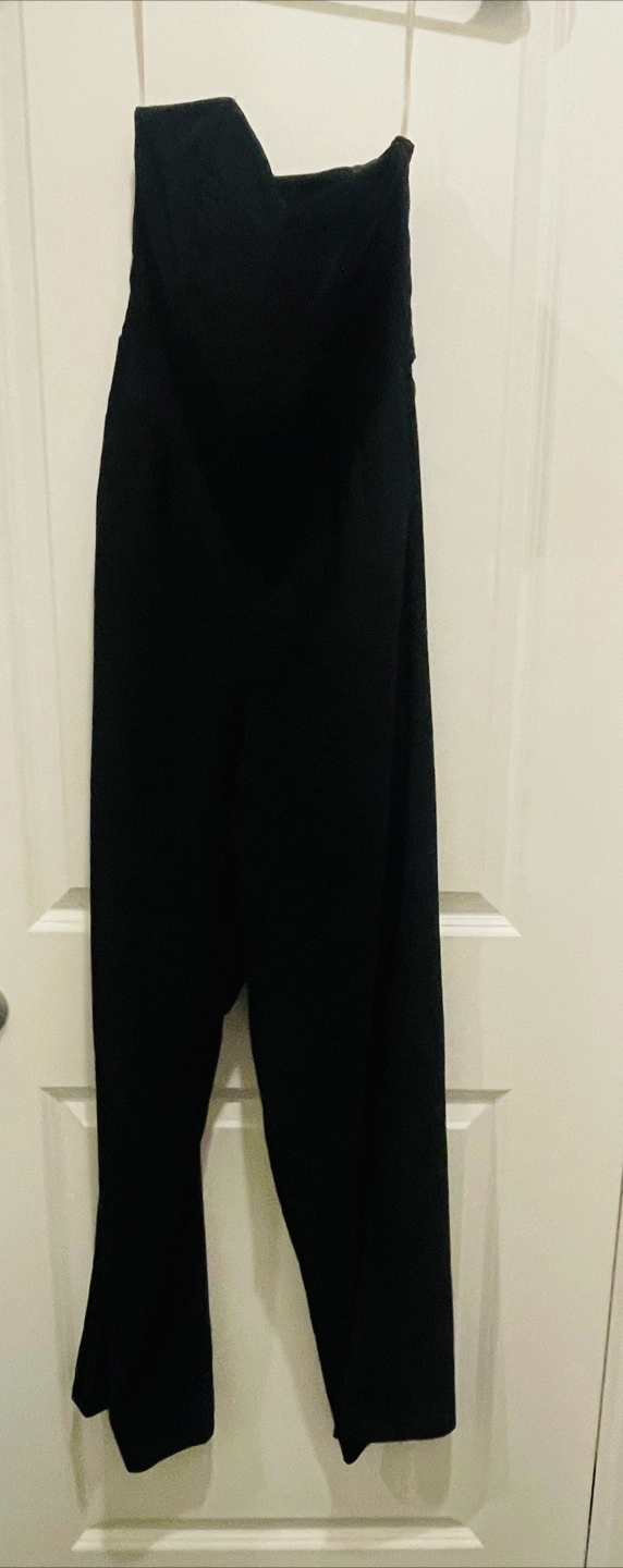 28Selling a black strapless wide leg jumpsuit. It's in great condition and ready for a new home! Perfect for a night out or a special occasion. It's a stylish and comfortable piece to add to your wardrobe. Size small
