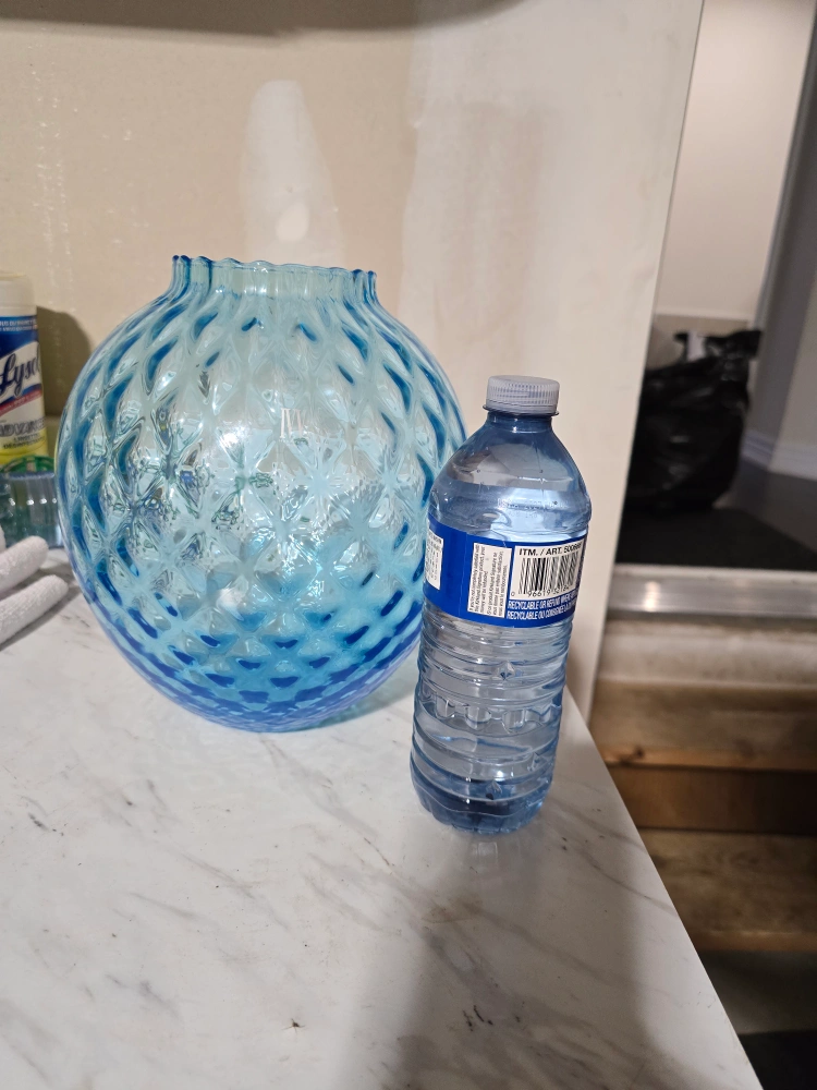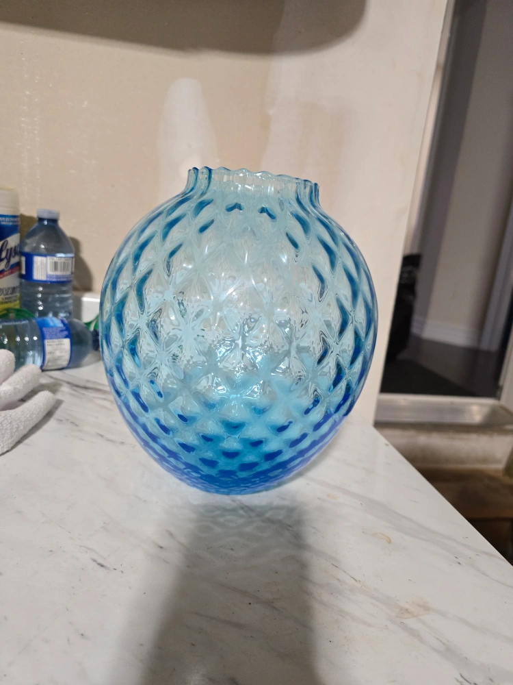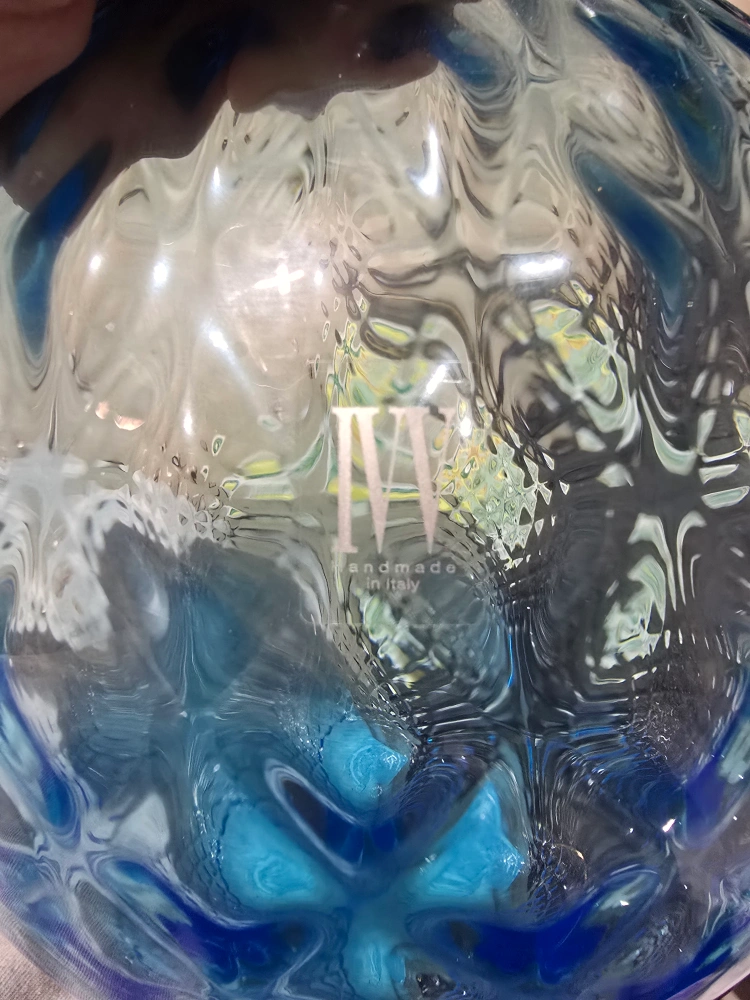 Here's a lovely blue glass vase by IVV, handmade in Italy! It has a beautiful textured pattern and would look great with flowers or as a decorative piece