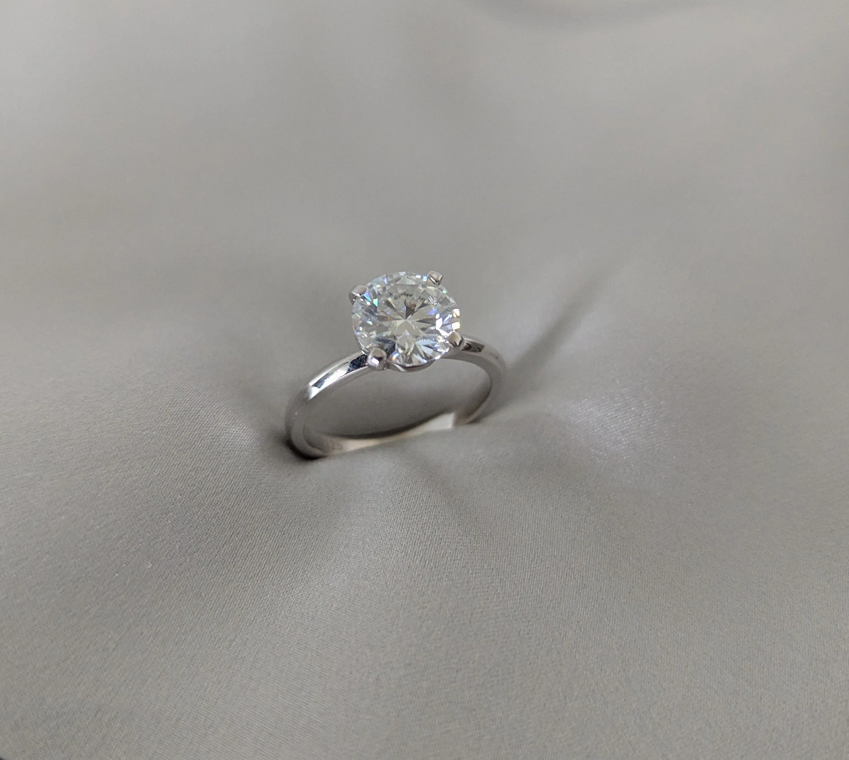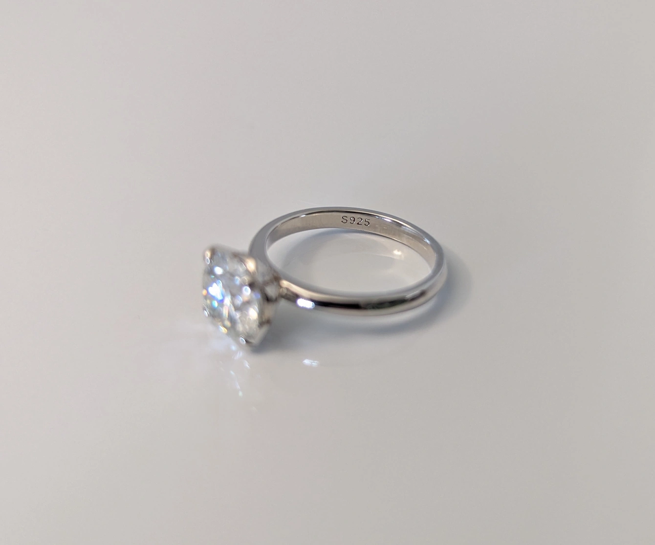 Stunning and elegant, this moissanite ring is made with 100% REAL moissanite β just as hard and brilliant as a natural diamond. It features a 2 carat (8mm) D Color stone with VVS1 clarity, offering incredible sparkle and luxury.