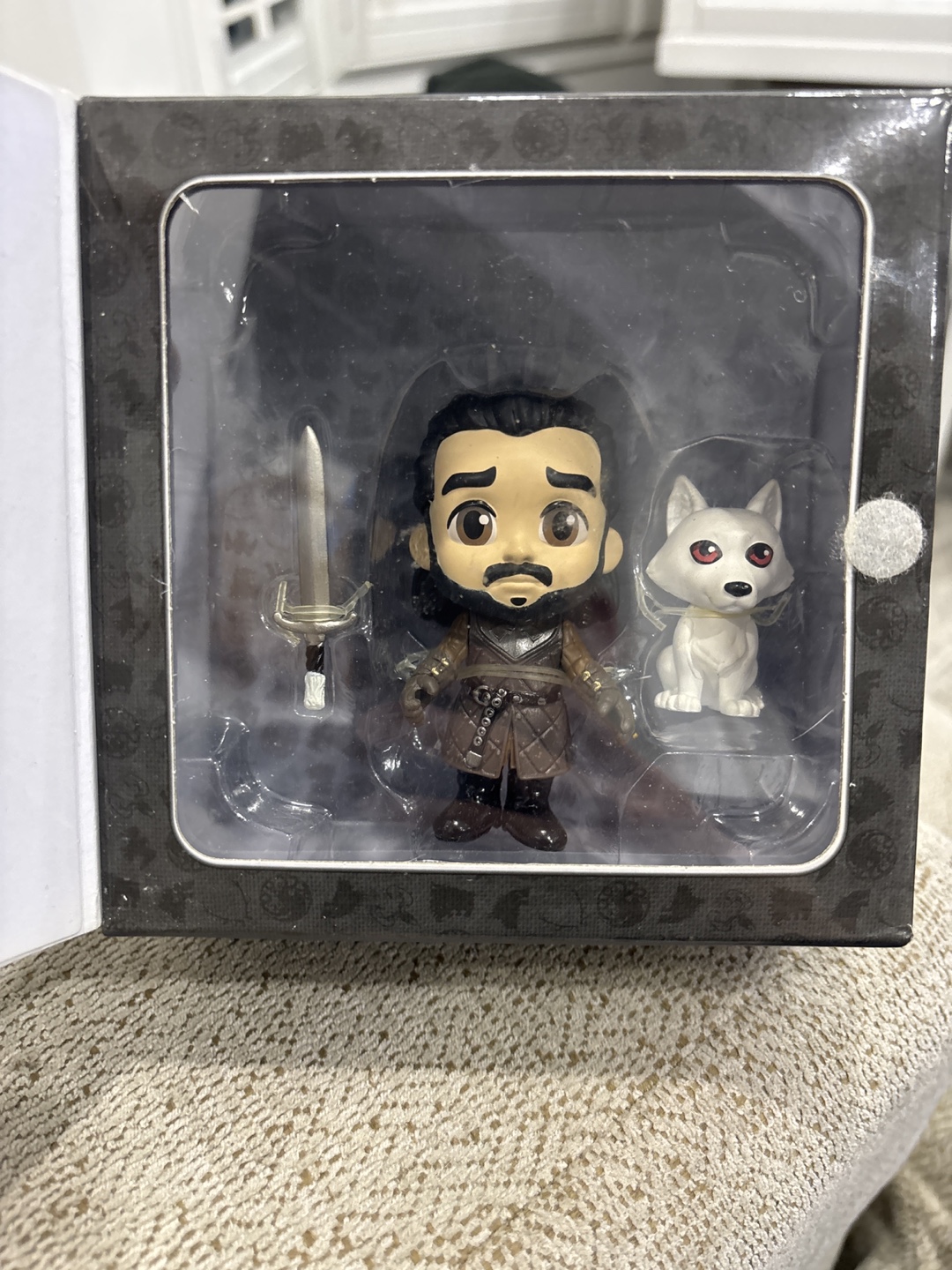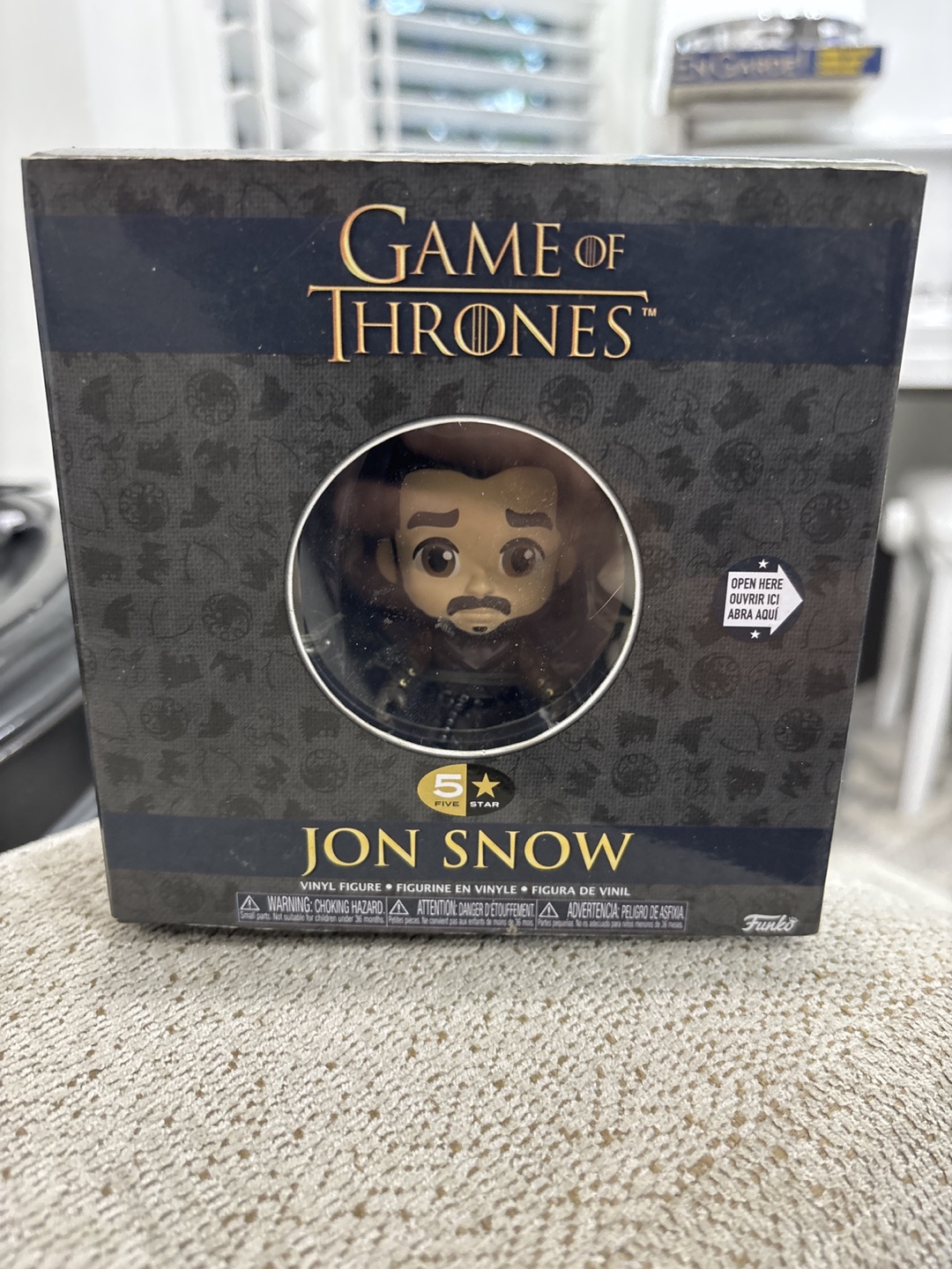 Selling a Game of Thrones Jon Snow 5 Star vinyl figure! It comes in its original box and includes Jon Snow, a sword, and a dire wolf figure.