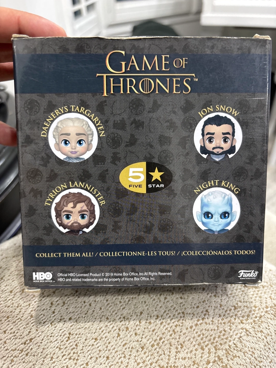 Selling a Game of Thrones Jon Snow 5 Star vinyl figure! It comes in its original box and includes Jon Snow, a sword, and a dire wolf figure.