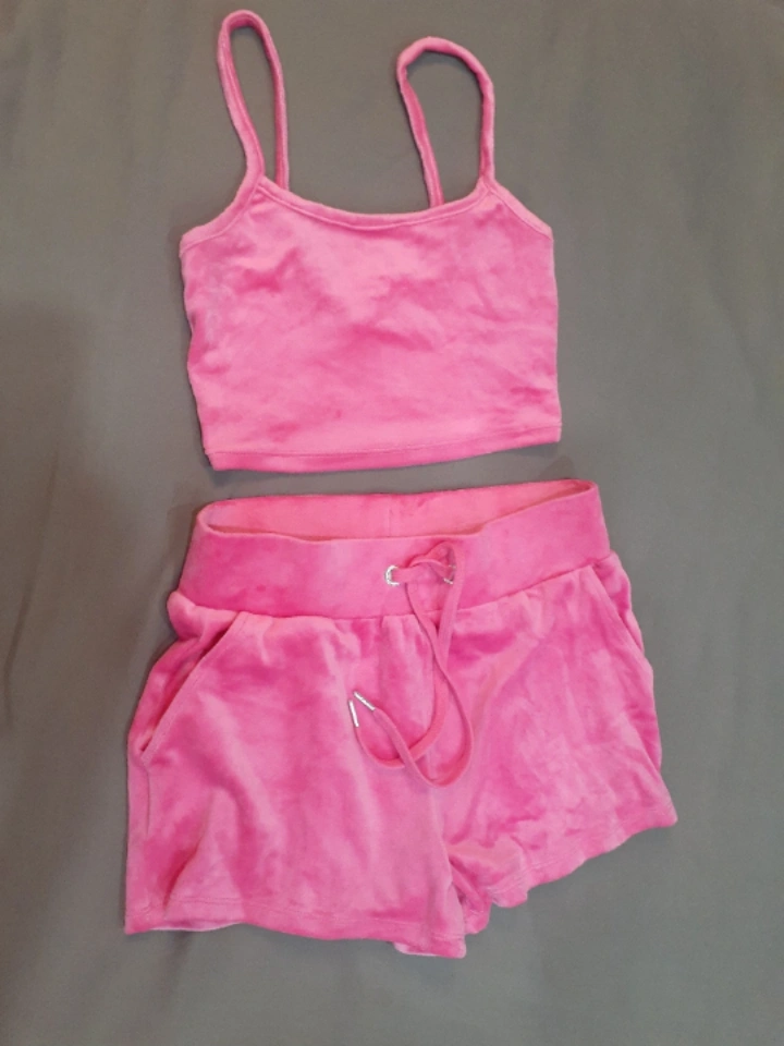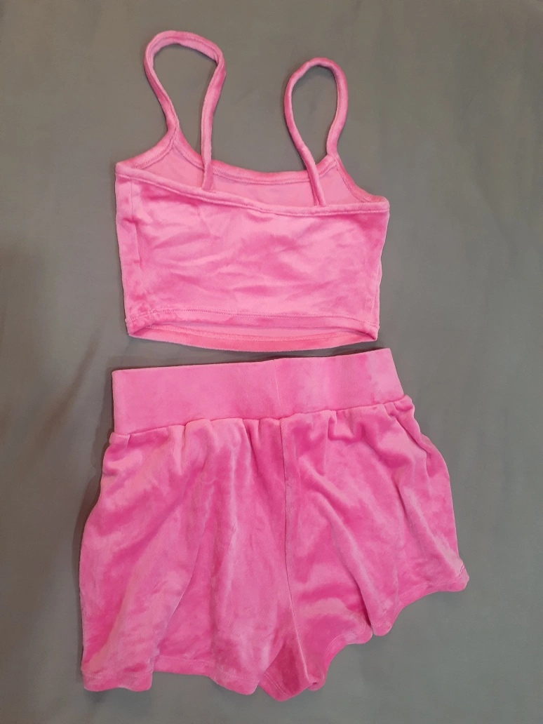 2 pc Pink Velour Shorts and Top