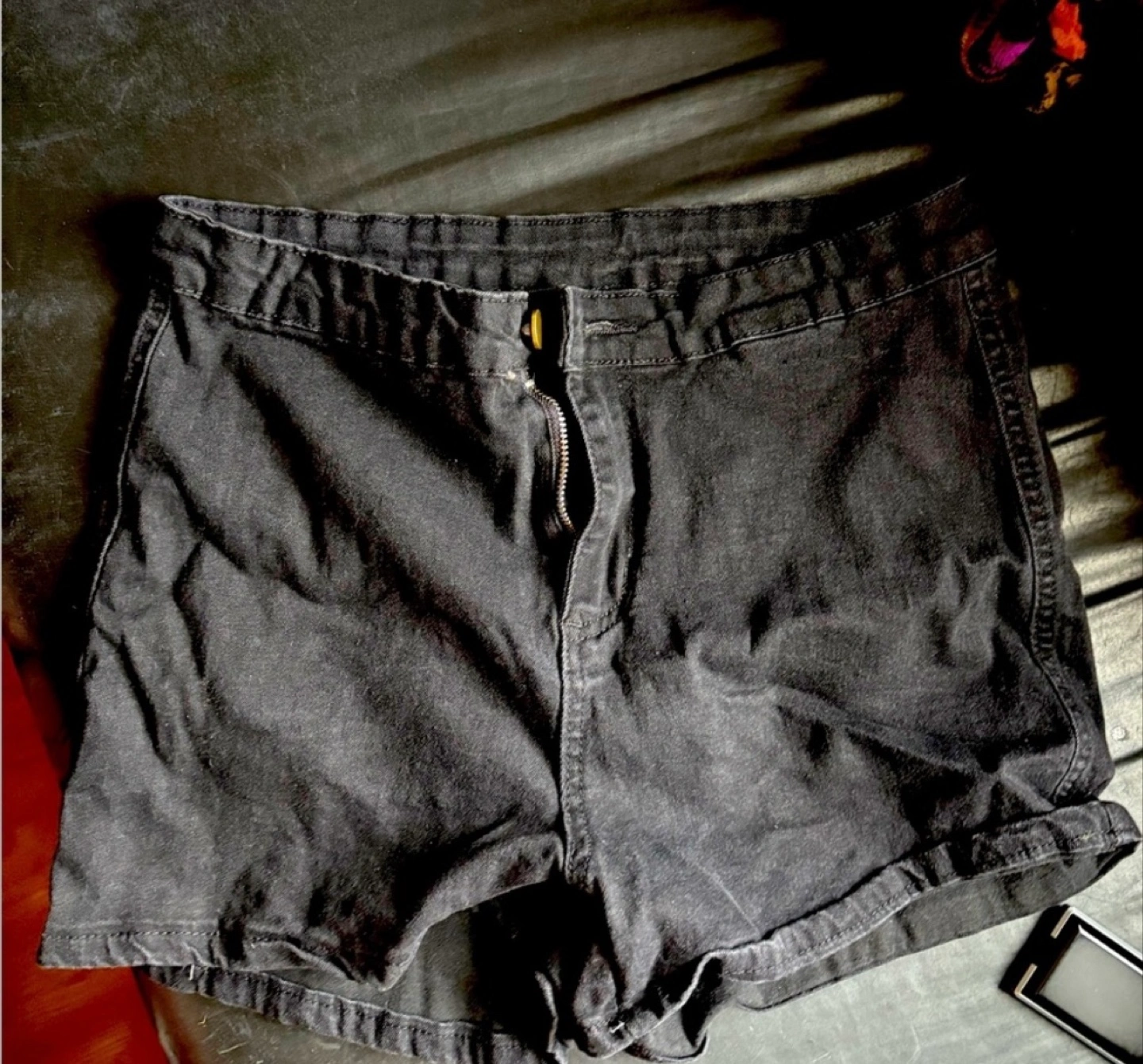 208Selling a pair of black denim shorts. They're in good condition and ready for a new home! Perfect for casual wear or dressing up. Worn once