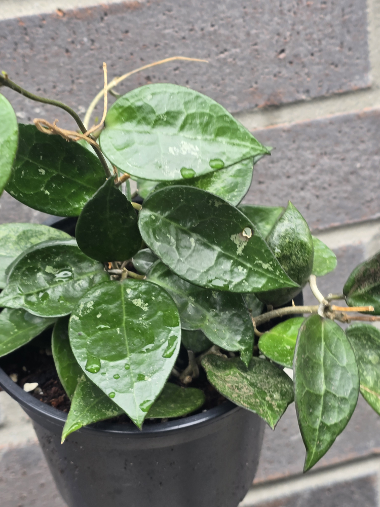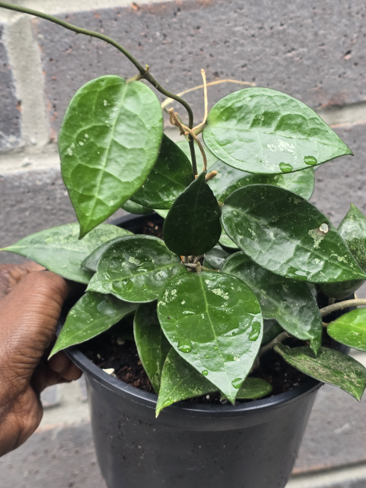 Selling a beautiful Hoya plant! It's in great condition and ready to brighten up your space. The leaves are a lovely green with unique markings. It's currently potted in a black plastic pot.