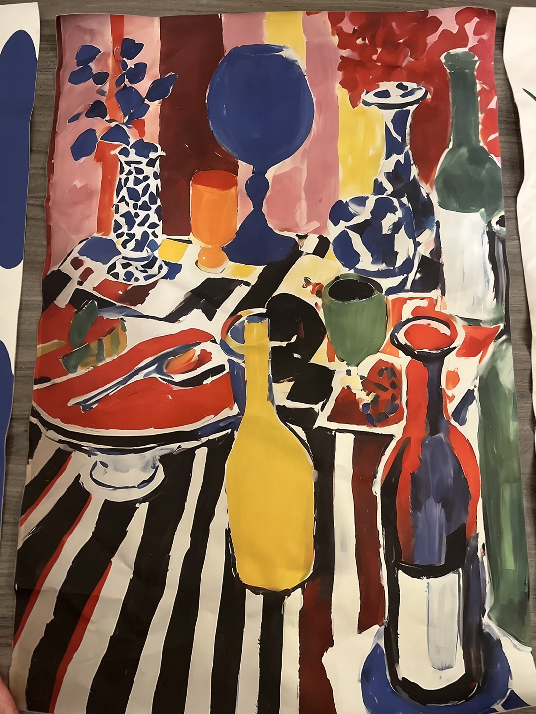 Selling a set of art prints featuring abstract and graphic designs. One features a 'Wine & Cheese Party' theme. Perfect for adding a pop of colour and personality to your space!
