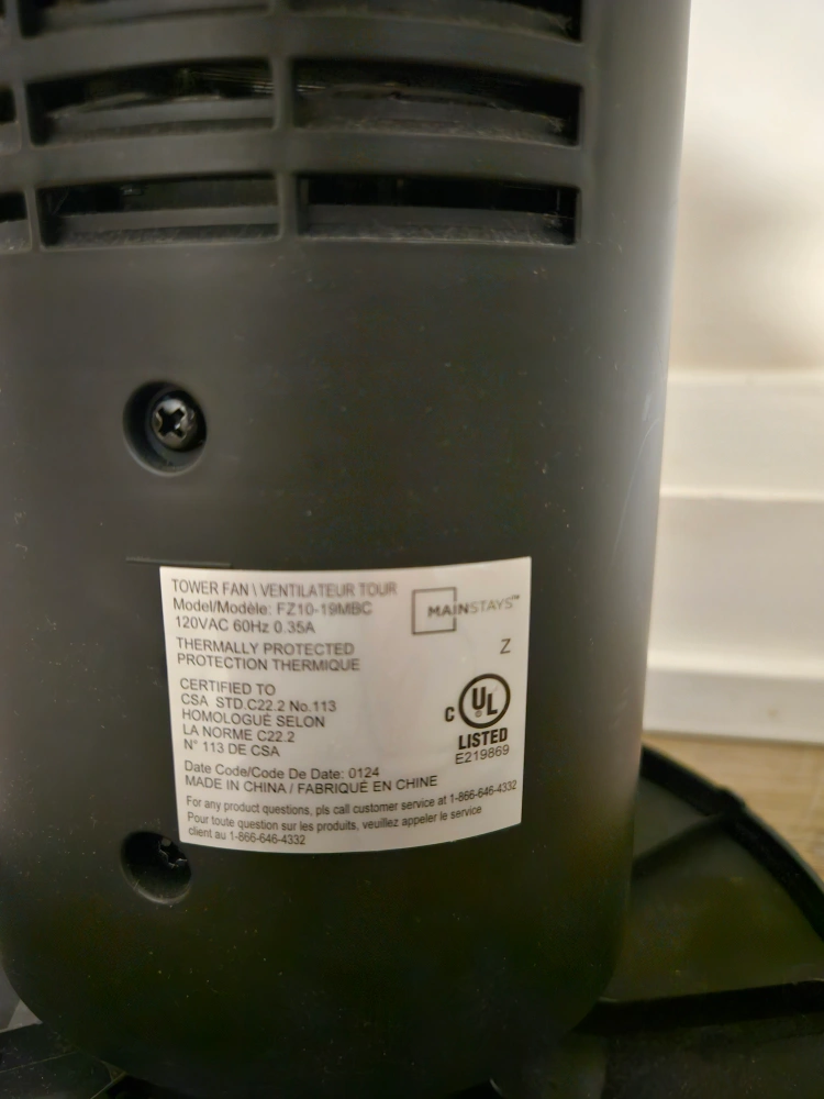95Selling a Mainstays tower fan in great condition! The model number is FZ10-19MBC. It has a simple control panel on top with multiple speed settings. Perfect for keeping cool during those hot summer days. Smoke and Pet free home. Cash and pick up only.