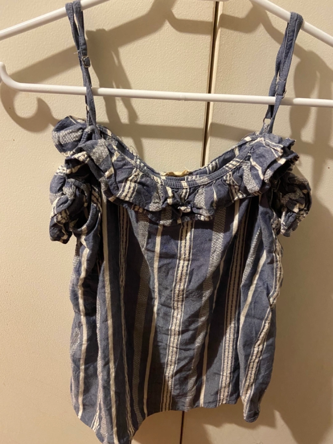 Here's a cute Hollister top with a blue and white striped pattern! It's in great condition and ready for a new home