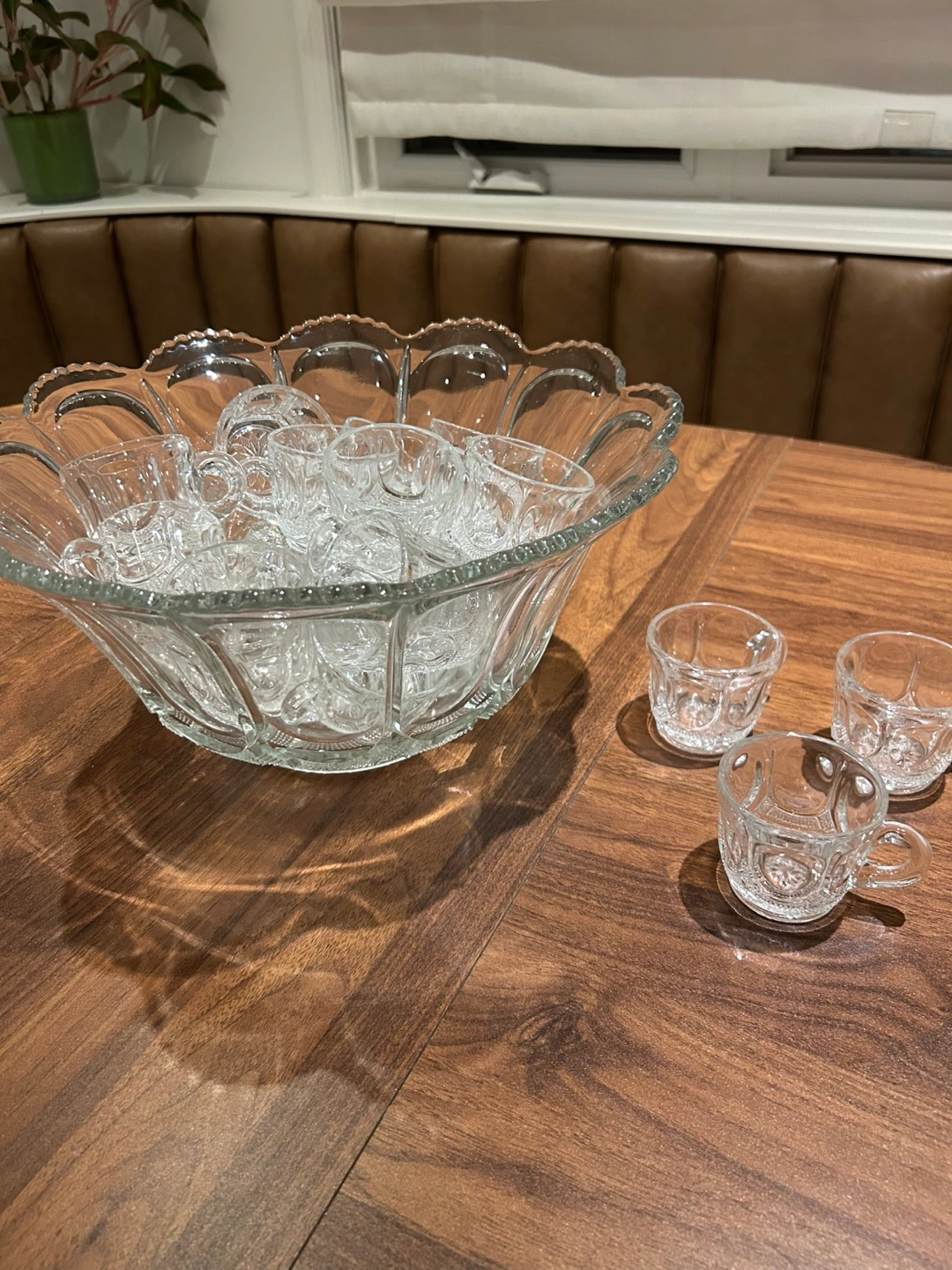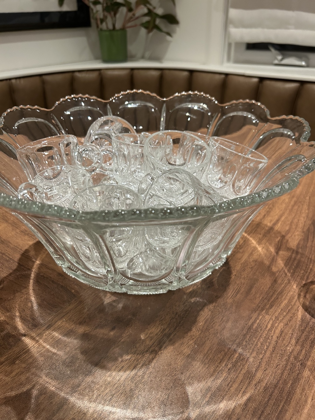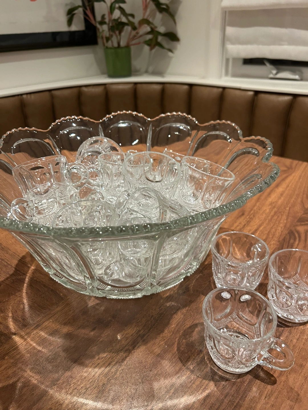 Galloway Glass vintage punch bowl set with 19 matching cups. Beautiful glass set, perfect for parties or special occasions. The set includes a large punch bowl and 19 small cups. It's in great condition and ready to add a touch of elegance and fun to your next gathering