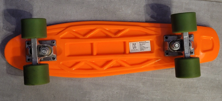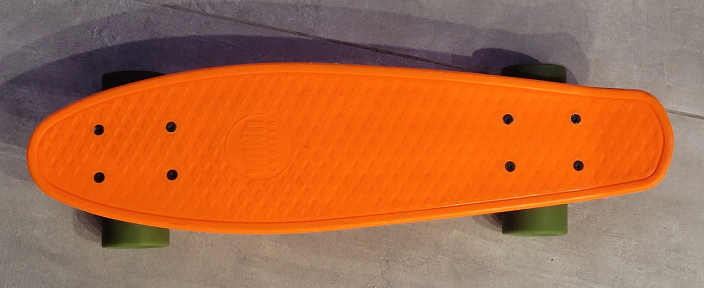 Orange cruiser skateboard w/ Green wheels available. Gently used, previously only used indoors.