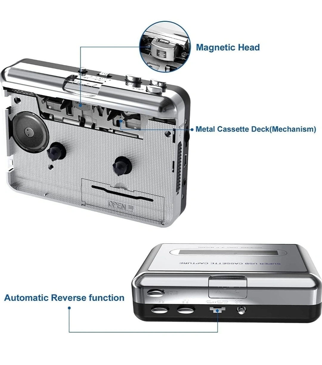 🔁 Auto-Reverse Function – No need to flip tapes manually.