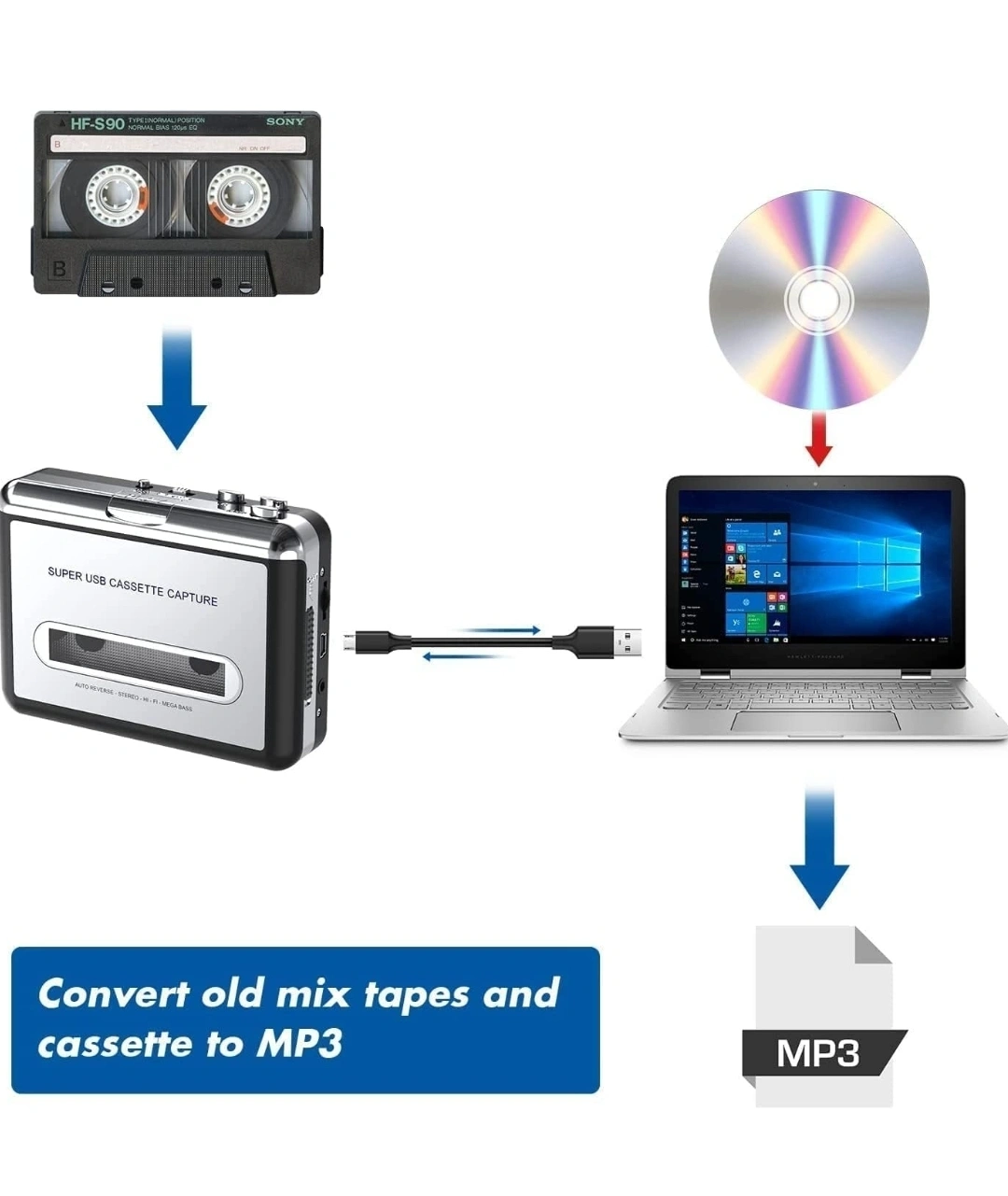 🌀 Cassette to MP3 Converter – Easily convert tapes to MP3 on any Mac or PC using USB.