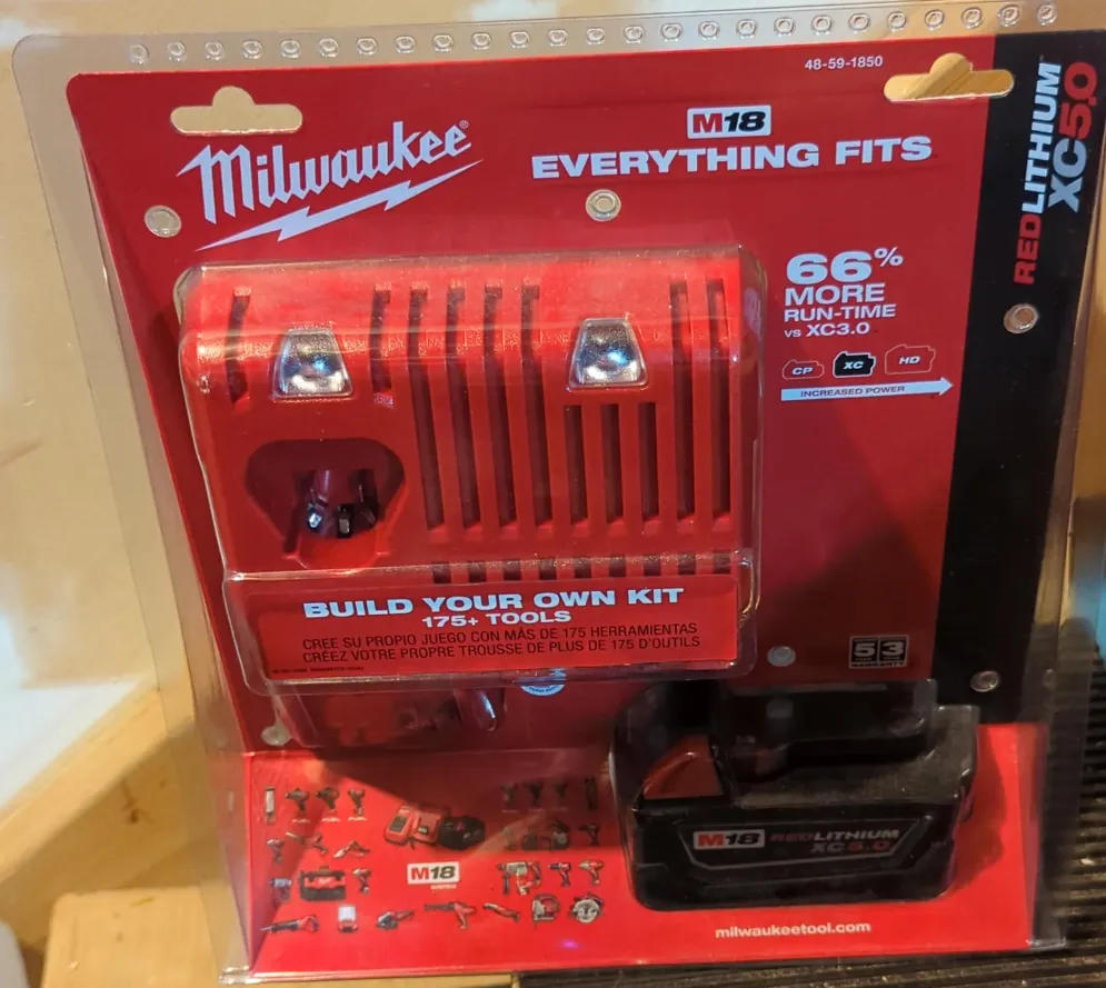 Selling a brand new Milwaukee M18 battery charger and 5.0 battery combo! This set is part of the M18 system where everything fits. You'll get 66% more run-time compared to the XC3.0 battery, thanks to the RedLithium XC5.0 advantage! Get ready for extended capacity and more power for all your demands