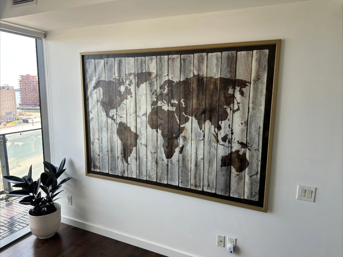 Add a touch of wanderlust to your space with this unique IKEA BJORKSTA Driftwood Map wall art in wood-like aesthetic.