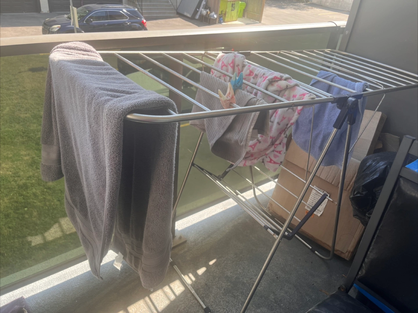 Moving sale - Selling a clothes drying rack. It's in great condition and folds up for easy storage when not in use. Perfect for small spaces or balconies!