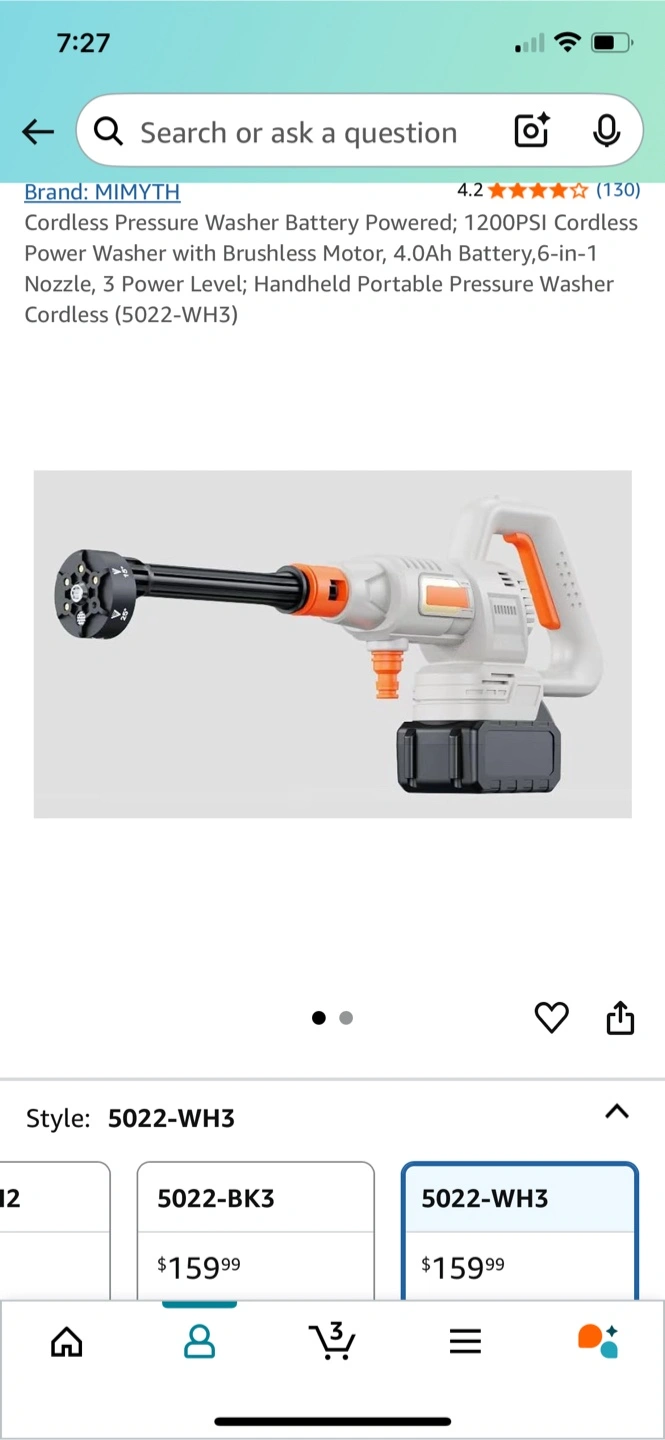Lightweight yet powerful, the MIMYTH cordless pressure washer delivers 1200 PSI with a brushless copper motor and 21V 4.0Ah battery for up to 40 minutes of cleaning. The 6-in-1 nozzle and foam cannon tackle everything from cars to patios with ease. Use the 23-ft hose to draw water from any source—bucket, river, or tap. Compact, portable, and easy to set up, it’s perfect for home, car, or outdoor adventures. Includes all accessories, storage case, and 1-year warranty.