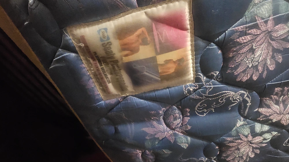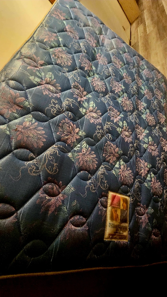 Selling a Sealy Posturepedic mattress! It has a floral pattern on a blue quilted fabric. It's in good condition and ready for a new home queen size mattress only