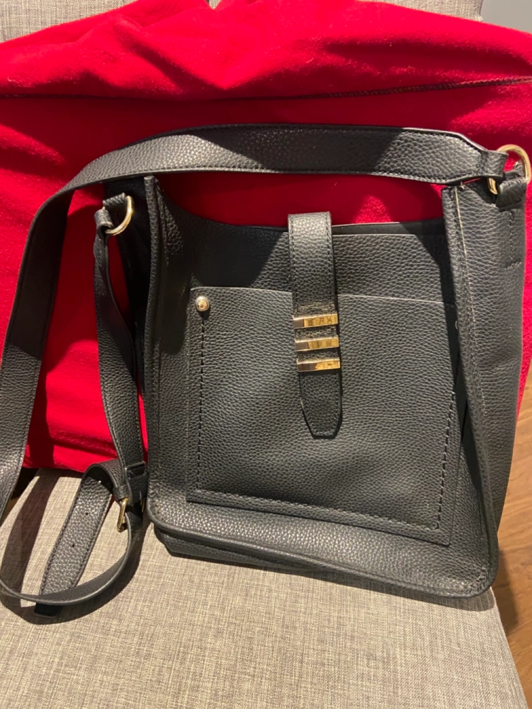 A stylish faux leather black shoulder bag is up for grabs! It's in great condition and ready for a new home. Perfect for everyday use or dressing up an outfit. Paid $80